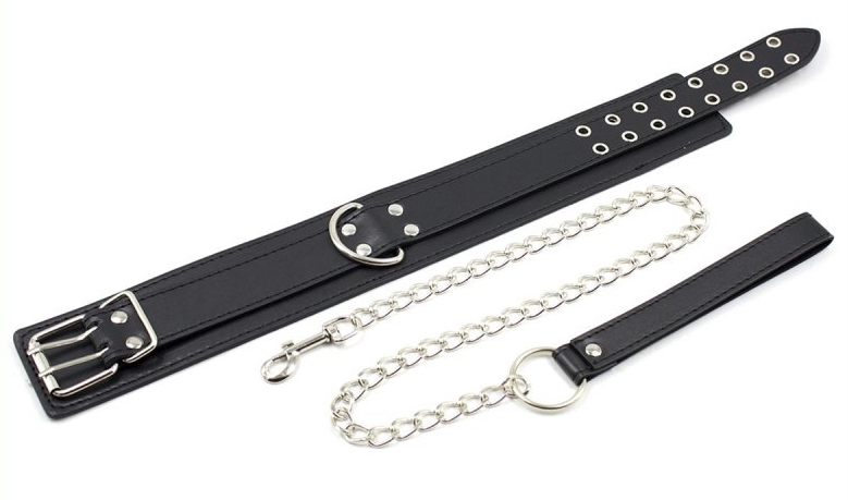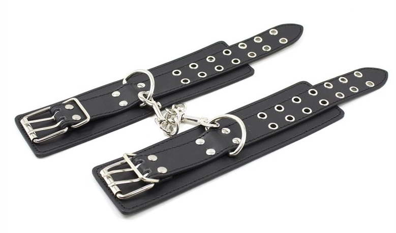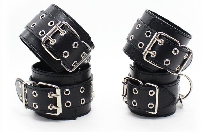 Ce kit est composé de : les menottes de poignets dont le tour va de 19 à 27cm les menottes de chevilles dont le tour va de 21 à 32cm le collier avec la laisse de 80cm. Le collier a un tour de cou de 31 à 45cm. Largeur de 6cm. Fabriqué en simili (polyuréthane)