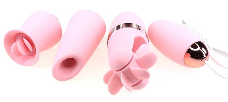 Ce kit de stimulation pour le clitoris est composé de 3 embouts en silicone : roue souple langue vibrante effet aspiration. Avec 6 rythmes différents par embout et la télécommande. En silicone.Recharge UBS