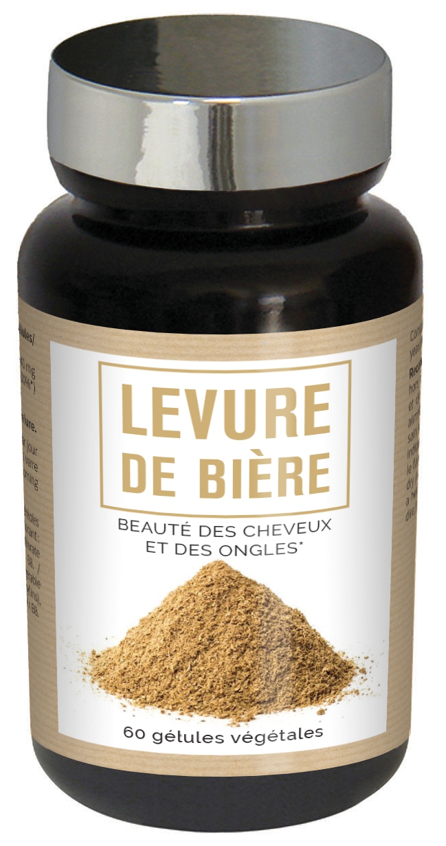 La levure de bière est composée d’une colonie de champignons microscopiques, généralement de l’espèce Saccharomyces cerevisiae ou Candida utilis. Ces micro-organismes non pathogènes, digèrent le sucre et l’amidon des céréales, créant un milieu riche en protéines et en vitamines, principalement celles du groupe B. Les vitamines B sont les vitamines du cheveu par excellence. Elles stimulent le renouvellement des cellules en général et notamment celles du follicule pileux. Elles permettent de fortifier les racines et participent à la fabrication de la kératine, constituant des cheveux et des ongles. Plus spécifiquement, la vitamine B5 aide à la croissance du cheveu, la vitamine B6 est un facteur indispensable au métabolisme des protéines soufrées de la kératine, et la vitamine B8 intervient dans le contrôle la sécrétion de sébum. La levure de bière est également riche en vitamine E, en zinc et en sélénium, elle permet de fortifier les cheveux et d’apporter de la brillance. Ces nutriments permettent également de limiter la chute de cheveux si cette dernière est liée à leur déficience. On peut ainsi utiliser la levure de bière sur les cheveux cassants, fins ou ternes pour leur redonner de l’éclat mais aussi pour lutter contre la chute des cheveux et favoriser la pousse. Elle renforce également les ongles mous, cassants ou dédoublés. Enfin, elle prévient le vieillissement prématuré des cellules et donc celui de la peau. INGREDIENTS POUR 4 GELULES :LEVURE DE BIERE…1440 mgVITAMINE B8……….50 ?g (100%) Conseils d’utilisation : 2 à 4 gélules par jour de préférence le matin avec un verre d’eau. Complément alimentaire à la levure de bière – Conforme au Décret 2006-352 notifié à la DGCCRF conformément audit décret en date du 01/08/2013. Pilulier de 60 gélules végétales – Cure 15 à 30 j