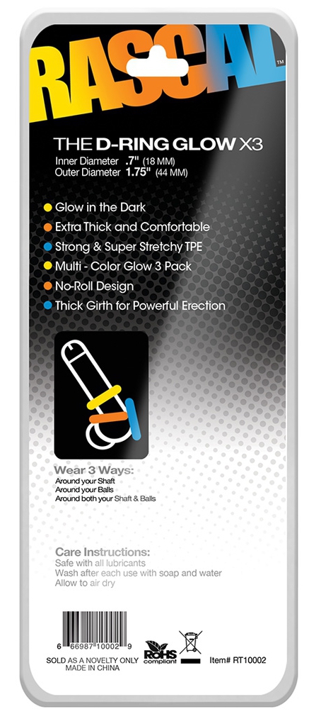 Lot de 3 Cockrings colorés D-Ring Glow