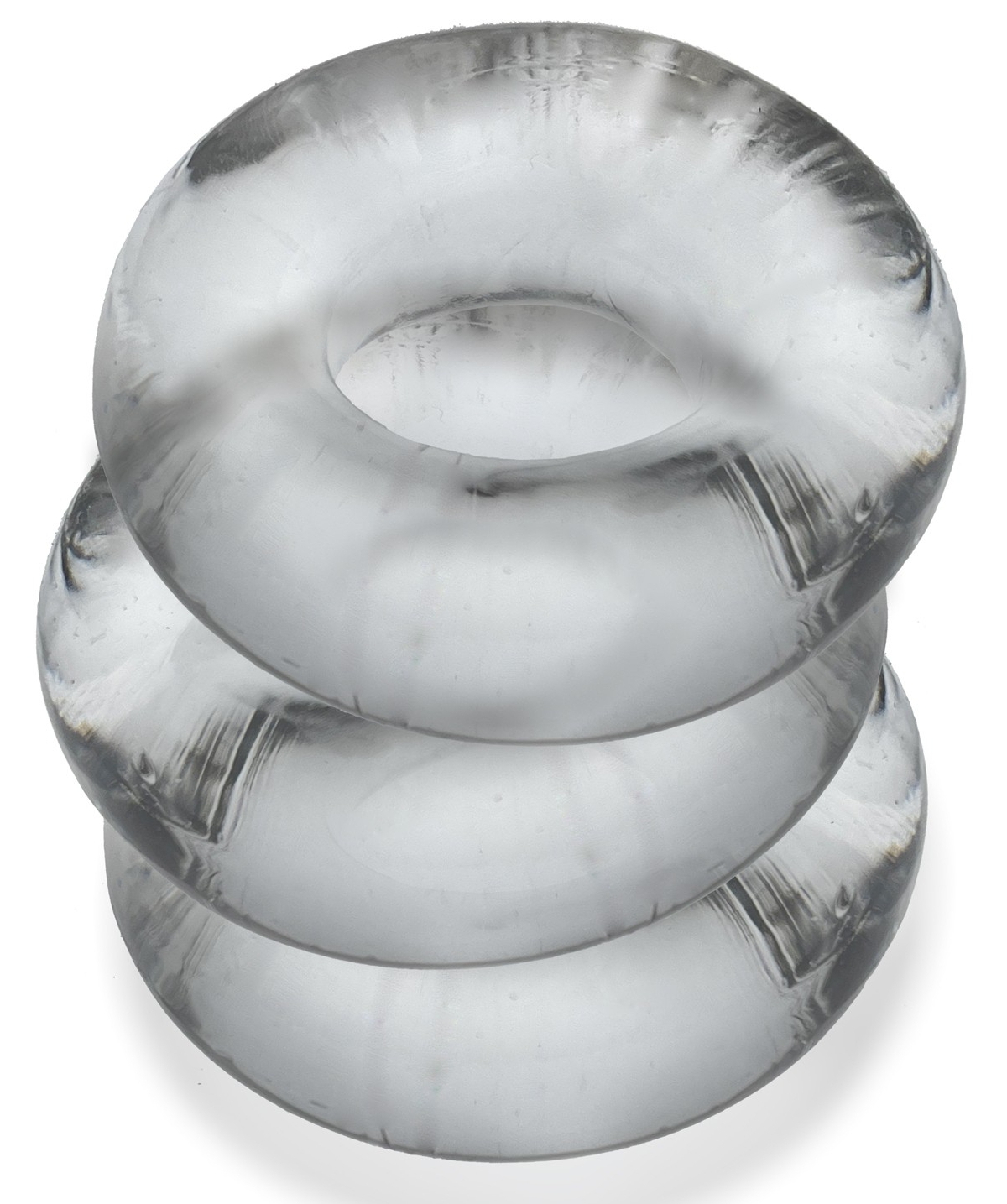 Ce lot est composé de 3 cockrings transparents proposés par la marque Oxballs. Ils se placent à la base du pénis ou au dessus des bourses pour renforcer l’excitation.Avec un diamètre intérieur de 22mm étirable, une largeur totale de 5cm et une épaisseur de 15mm. Fabriqués en matière TPR extensible