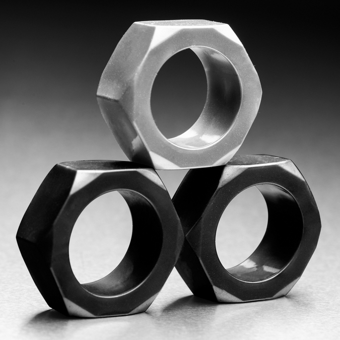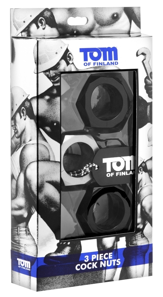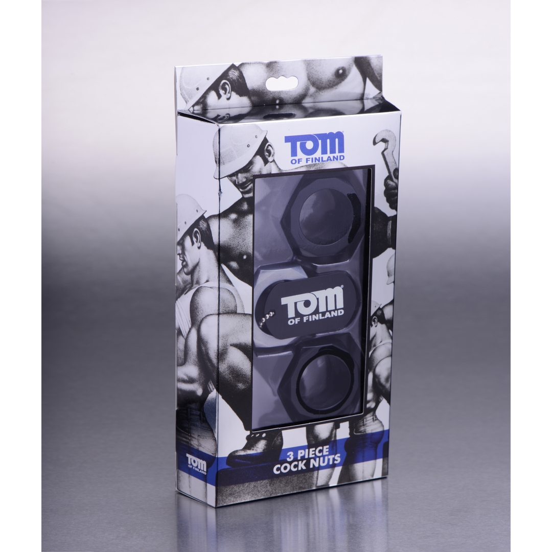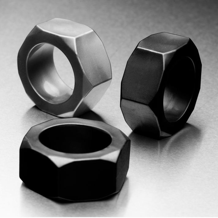 Lot de 3 cockrings noirs et gris en forme d’écrous Longueur de 4 cm et diamètre intérieur de 27 mm. Médaille noire de la marque En TPE souple