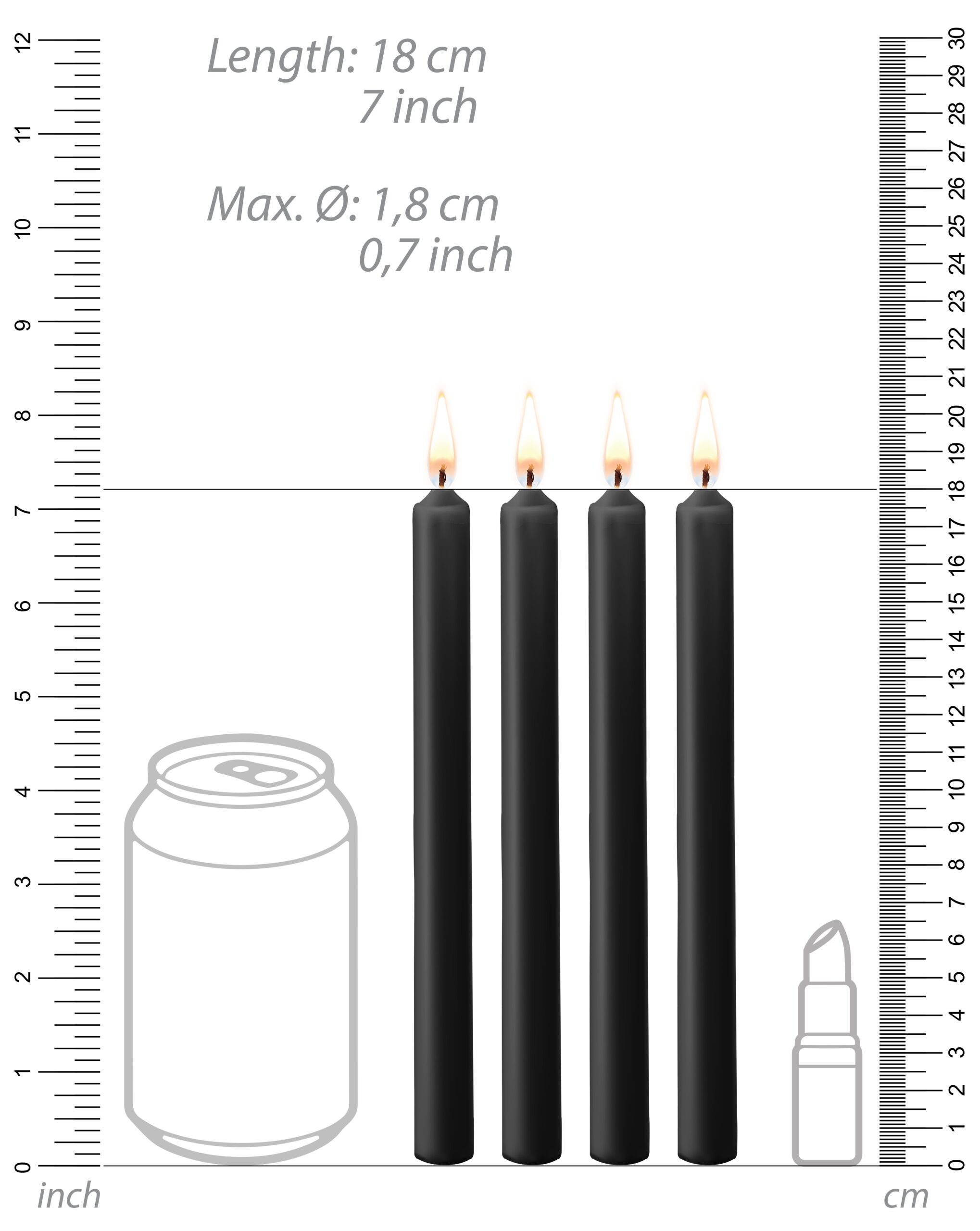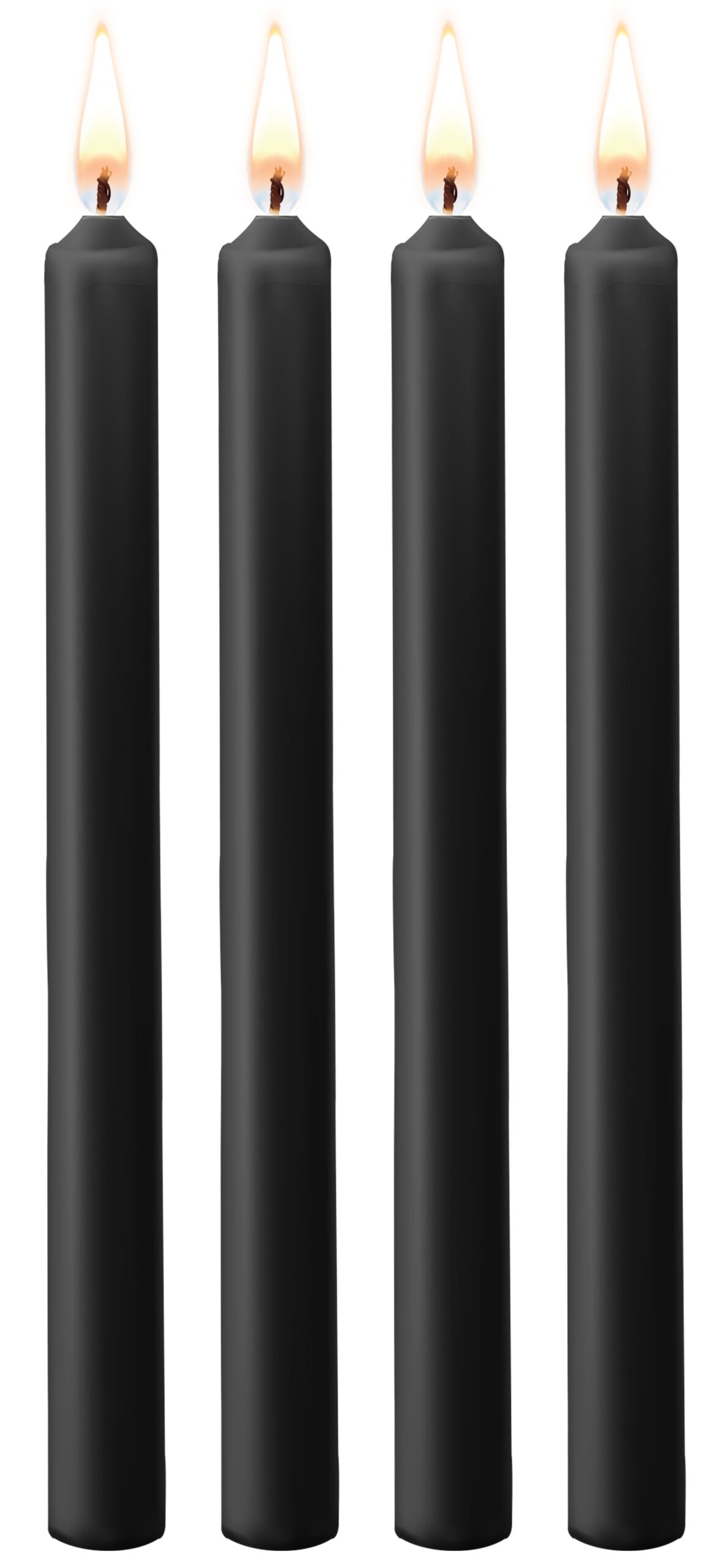Ce lot est composé de 4 bougies noires permettant des jeux de soumission intenses.Chacune d’elles mesure 18cm de longueur.Elles produisent de la cire non brulante. Fabriquées en paraffine