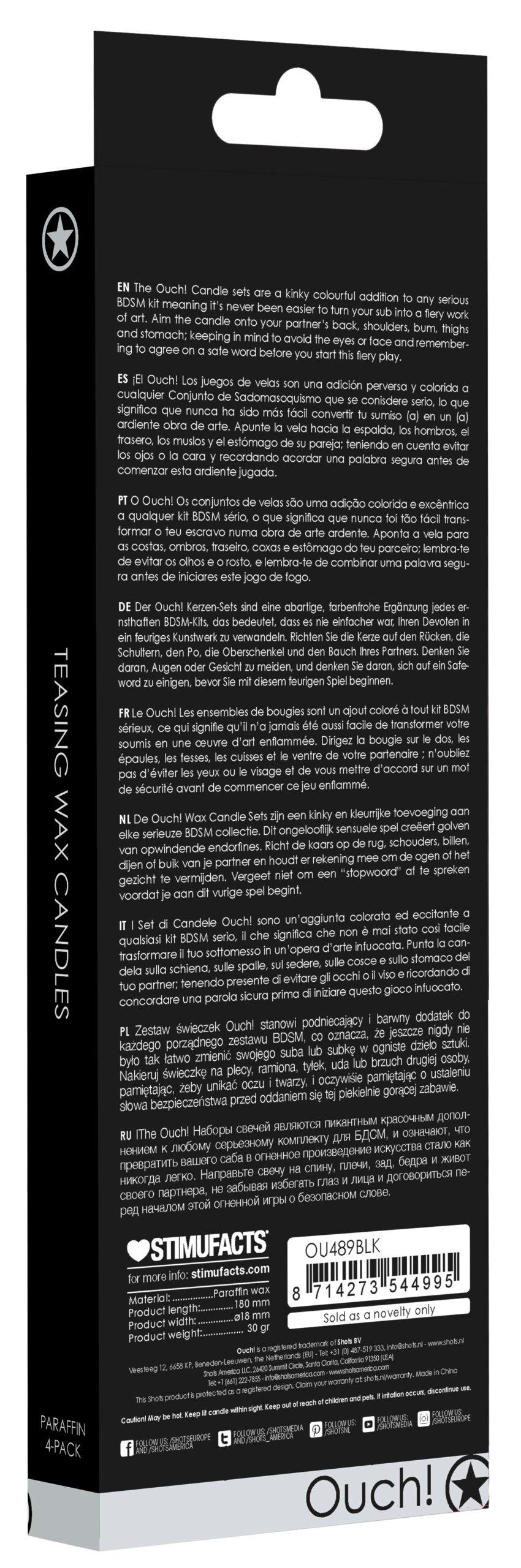Lot de 4 bougies SM Teasing Wax Noire