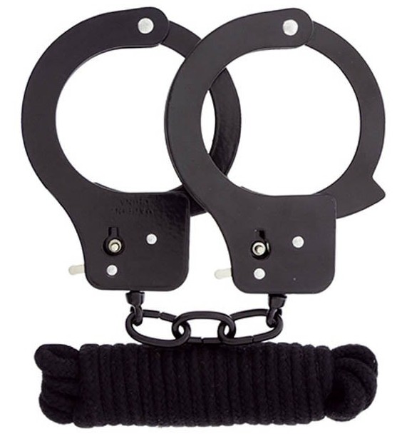 Ce lot est constitué de deux accessoires SM: Une paire de menottes noires en métal avec deux clés pour les ouvrir Une corde fine de 3 mètres de long de couleur noire Les deux éléments permettent de passer un moment Hard et de réaliser vos envies de BDSM, soumission et domination. Idéal pour les débutants en kit de démarrage
