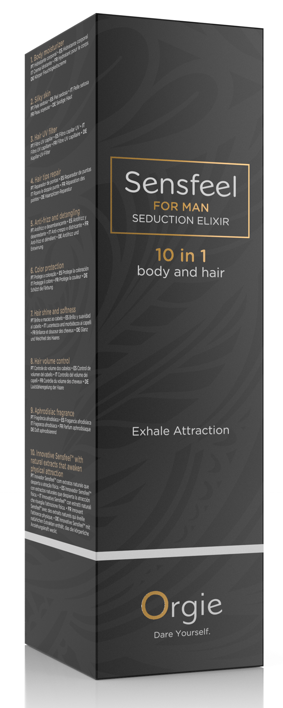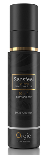 La Lotion pour Corps et Cheveux Sensfeel For Man 100 ml avec un ingrédient actif d’origine naturelle, le Sensfeel for him, pour attirer les partenaires. Flacon de 10 ml