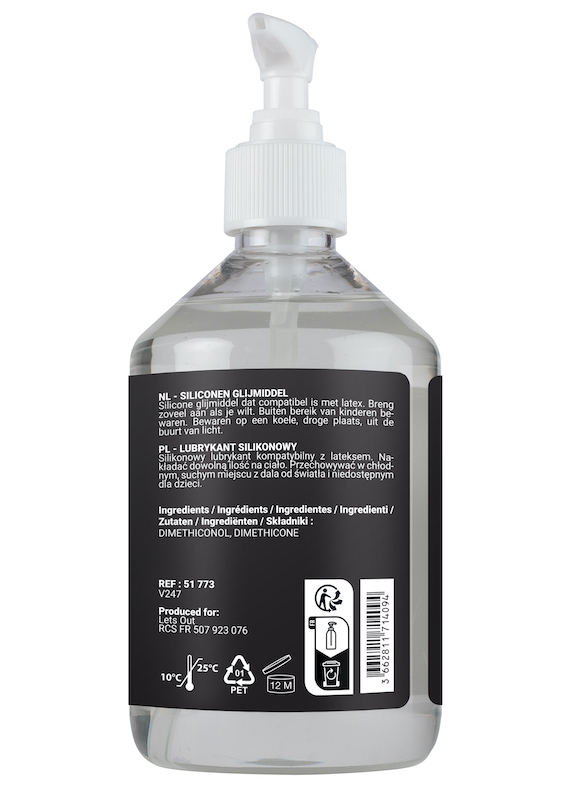 Composition : Dimethiconol, Dimethicone Précautions d’utilisation : Conserver dans un endroit sec et à l’abri de la lumière Conserver 12 Mois maximum après ouverture Garder hors de portée des enfants Éviter le contact avec les yeux, la peau abimée et les plaies. En cas d’irritations, arrêter l’usage et consulter un médecin si cela persiste Tester sur une petite surface. En cas de rougeurs, allergies ou gênes, ne pas utiliser Ce lubrifiant n’est pas un contraceptif. Il ne contient pas de spermicide Ne pas avaler