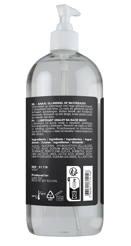 Lubrifiant conçu pour l’anal afin d’améliorer la glisse et le confort durant la pénétration.Texture fluide, douce, non grasse et non collante. Bouteille Pompe 1 Litre. Compatible avec les préservatifs