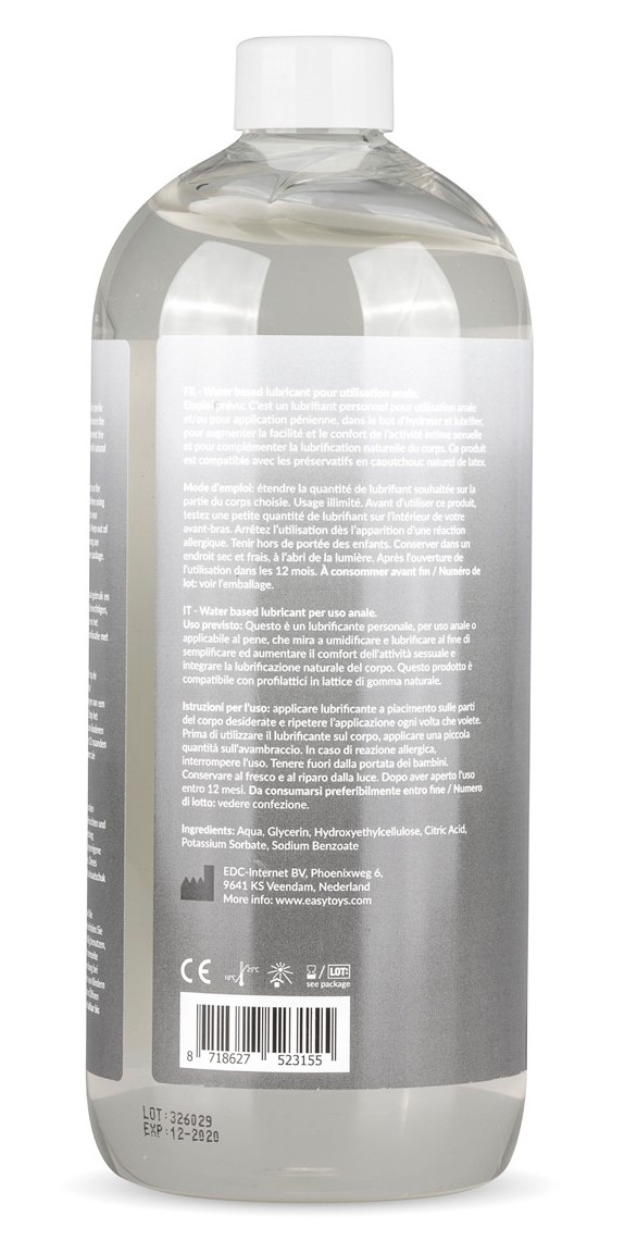 Le lubrifiant que nous vous proposons est idéal pour la pénétration anale. Il vous permettra de décupler vos sensations et donc votre plaisir. Grâce à son format de 1000 ml, vous n’êtes pas prêt de manquer de lubrifiant. A vous les soirées coquines !