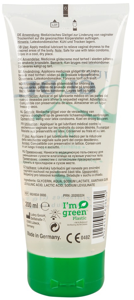 Composition : Glycerin, Aqua, Sodium lactate, Xanthan Gum, Levulinic Acid, Lactic Acid, Sodium levulinate. Précautions d’utilisation: Conserver dans un endroit sec et à l’abri de la lumière Garder hors de portée des enfants Éviter le contact avec les yeux, la peau abimée et les plaies. En cas d’irritations, arrêter l’usage et de consulter un médecin si cela persiste Tester sur une petite surface. En cas de rougeurs, allergies ou gênes, ne pas utiliser Ce lubrifiant n’est pas un contraceptif. Il ne contient pas de spermicide Ne pas avaler