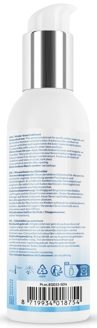 Composition : Aqua, Glycerin, Hydroxyethylcellulose, Sodium Benzoate, Potassium Sorbate, Sodium Hydroxide, Sodium Acetate, Isopropyl Alcohol, Cellulose, Citrid Acid Précautions d’utilisation : Conserver dans un endroit sec et à l’abri de la lumière Garder hors de portée des enfants Éviter le contact avec les yeux, la peau abimée et les plaies. En cas d’irritations, arrêter l’usage et de consulter un médecin si cela persiste Ce lubrifiant n’est pas un contraceptif. Il ne contient pas de spermicide Ne pas avaler A utiliser dans les 6 mois suivant l’ouverture