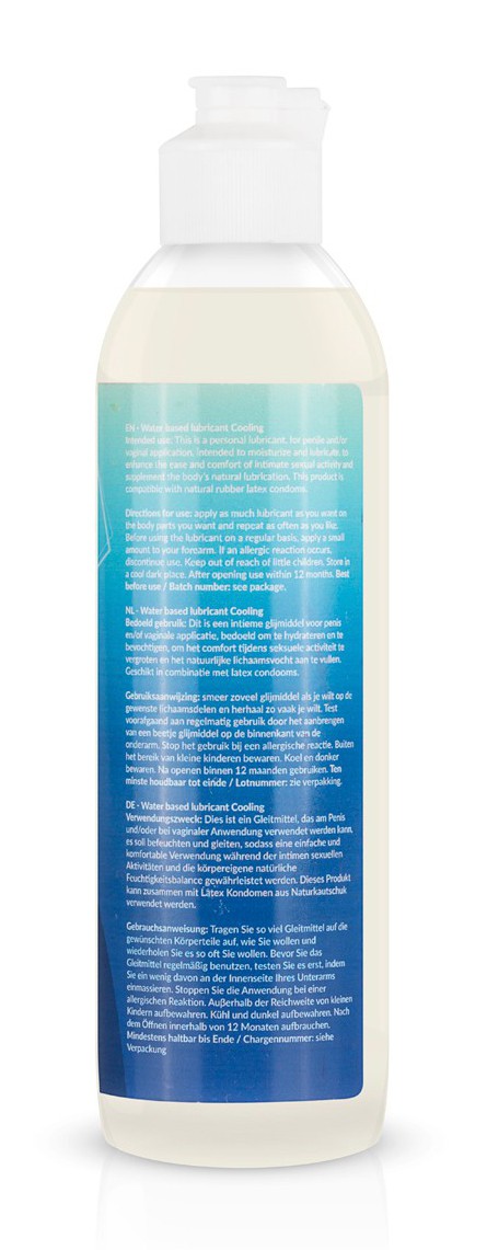 Ingrédients : Aqua, Hydroxyethylcellulose, isoceteh-20, ciric acid, glycerin, menthol, potassium sorbate, sodium benzoate. Précautions d’utilisation: Conserver dans un endroit sec et à l’abri de la lumière Garder hors de portée des enfants Éviter le contact avec les yeux, la peau abimée et les plaies. En cas d’irritations, arrêter l’usage et de consulter un médecin si cela persiste Tester sur une petite surface. En cas de rougeurs, allergies ou gênes, ne pas utiliser Ce lubrifiant n’est pas un contraceptif. Il ne contient pas de spermicide Ne pas avaler