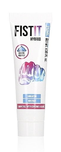 Le lubrifiant hybride Fist It est conçu avec une texture onctueuse et fluide. Il est réalisé à base d’eau et de silicone.Il permet un haut pouvoir de glisse et rend le rapport sexuel plus confortable. Non gras et non collant. Compatible avec les préservatifs et les gants en latex