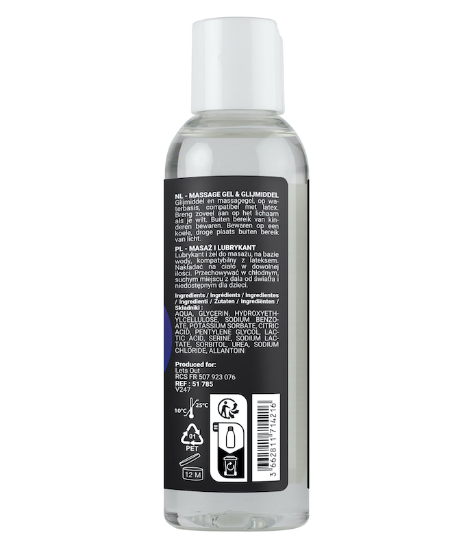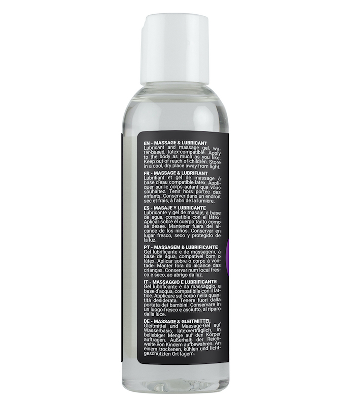 Lubrifiant et gel de massage à la fois, conçu à base d’eau.Texture fluide, non grasse, non collante pour une application facile. Idéal pour les moments coquins réussis (sexe et massages sensuels). Compatible avec les préservatifs