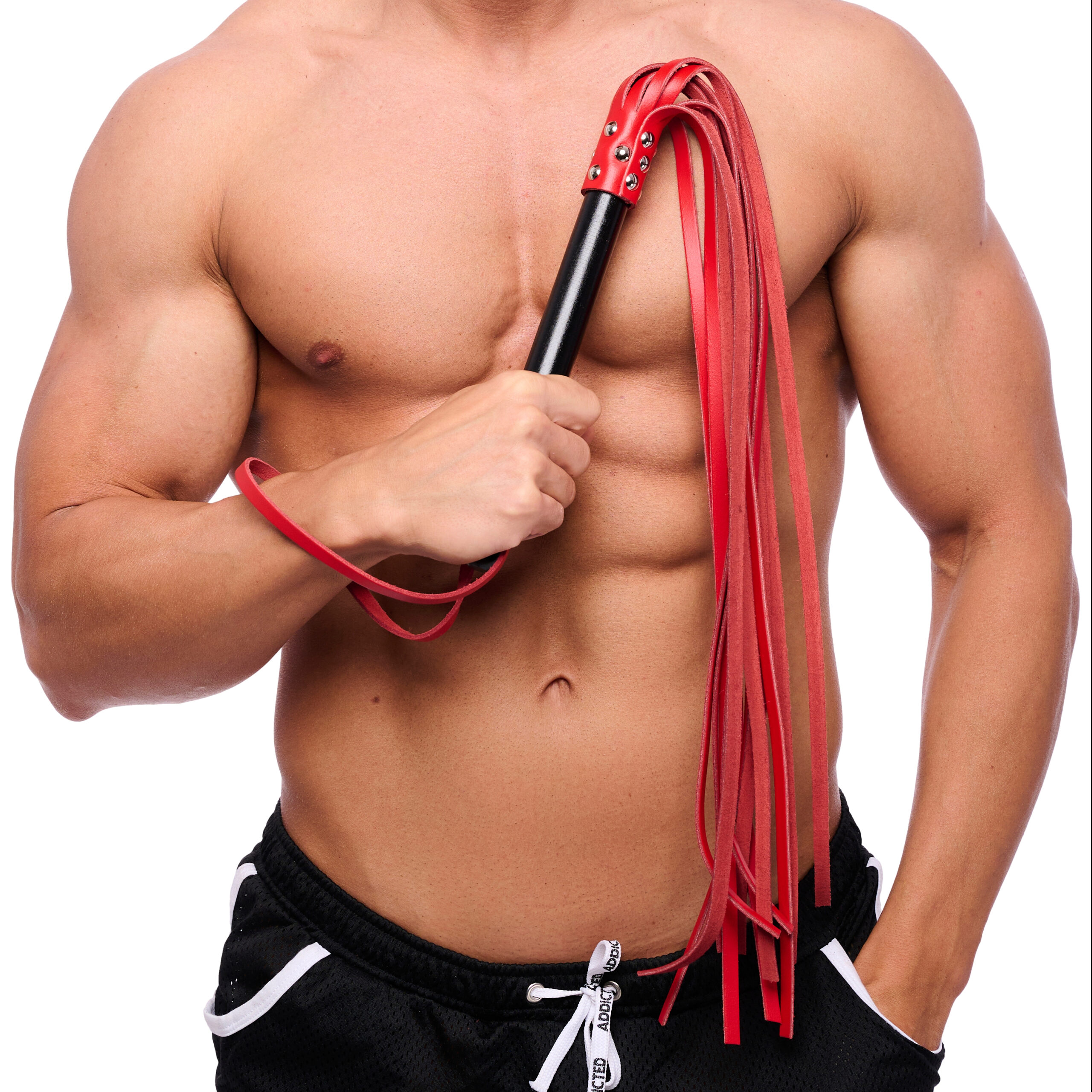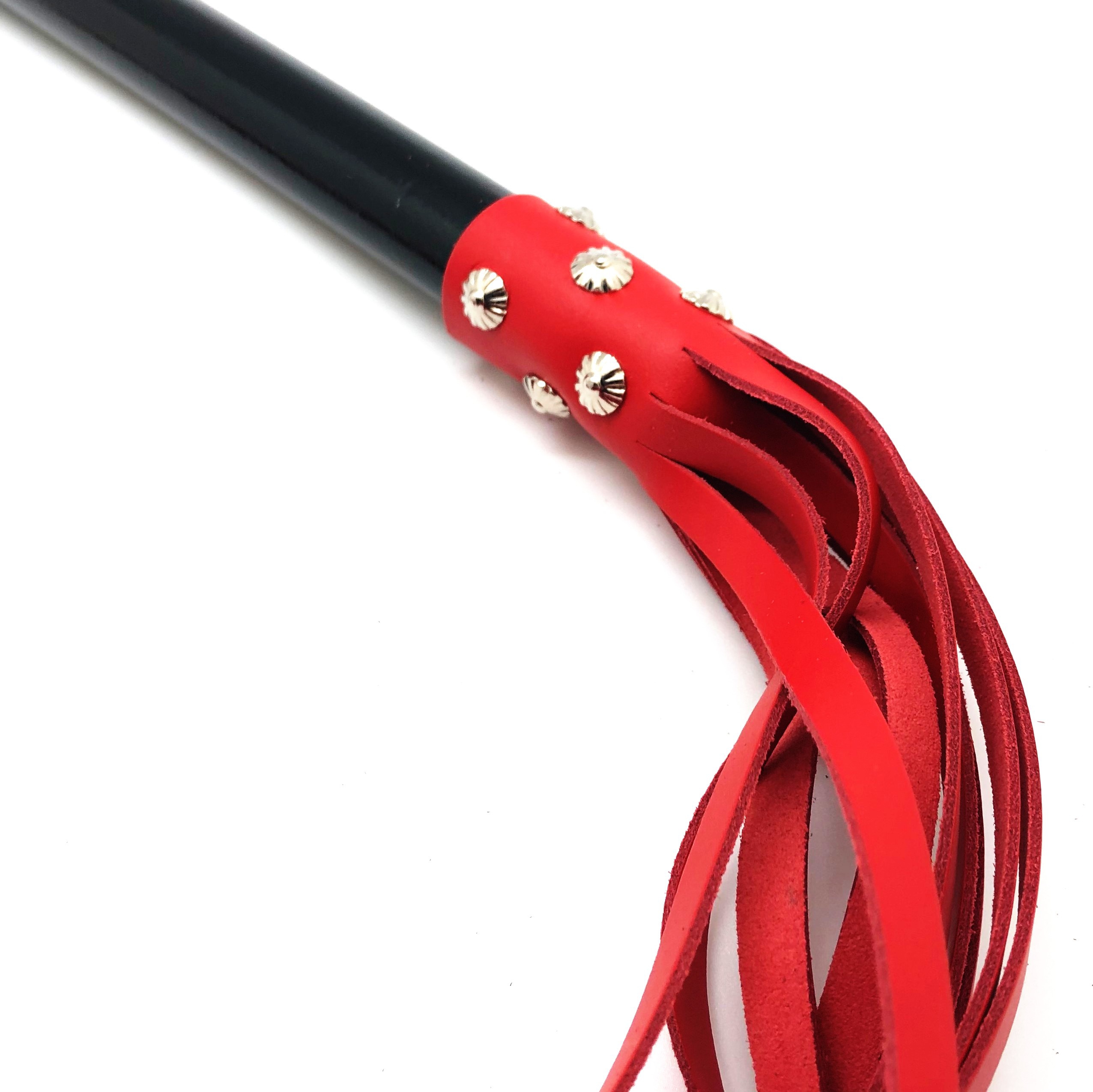 MARTINET BRINS EN CUIR ROUGE AVEC MANCHE EN BOIS12 Lanières Longueur totale : 78cmCuir de haute qualitéTannage végétal Fabriqué en Europe