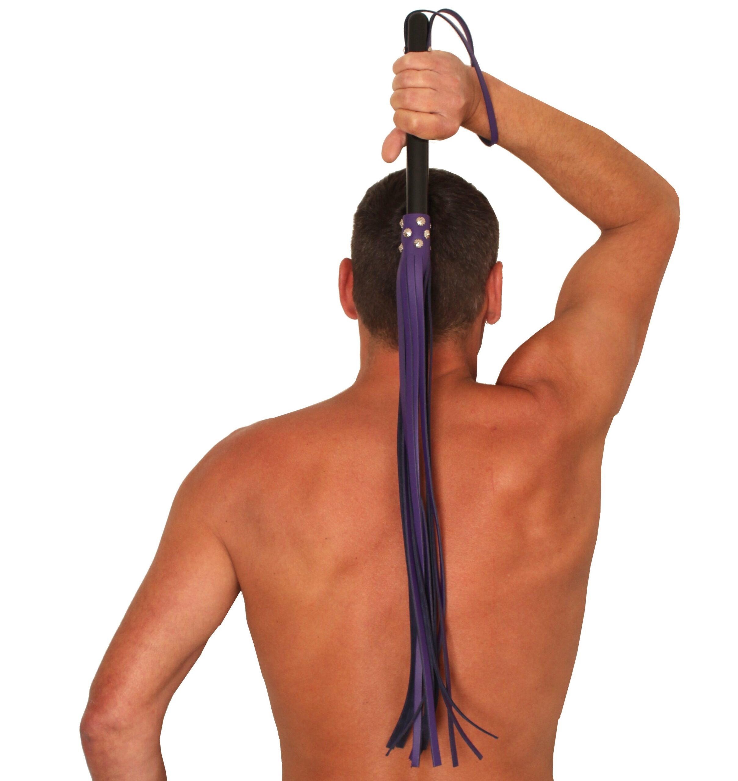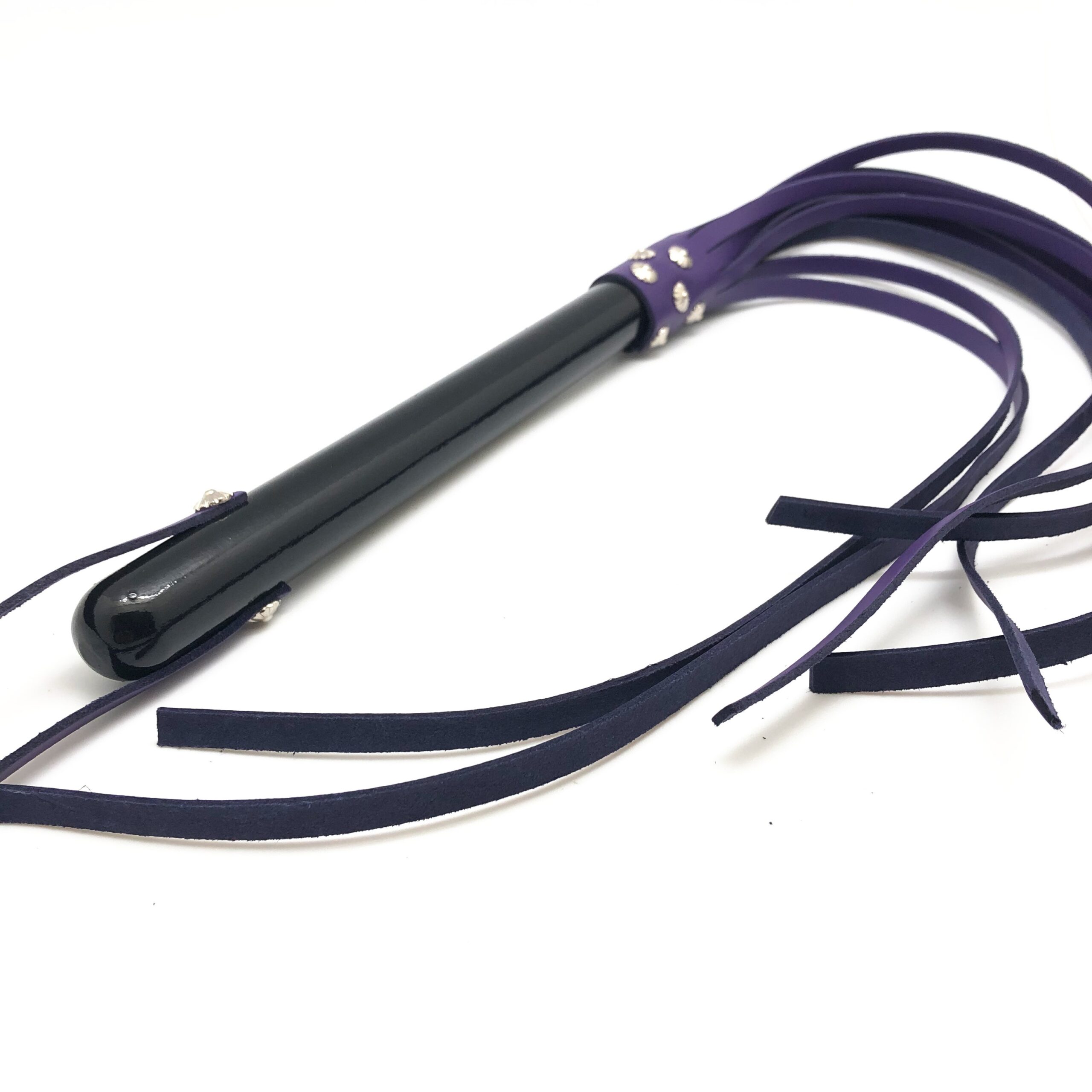 MARTINET BRINS EN CUIR VIOLET AVEC MANCHE EN BOIS12 Lanières Longueur totale : 78cmCuir de haute qualitéTannage végétal Fabriqué en Europe