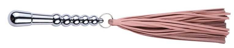 Ce martinet est un accessoire réalisé avec un manche en métal et des lanières roses en simili. Elles sont fines et mesurent 24cm venant caresser les fesses ou frapper la peau.Longueur totale de 45cm.