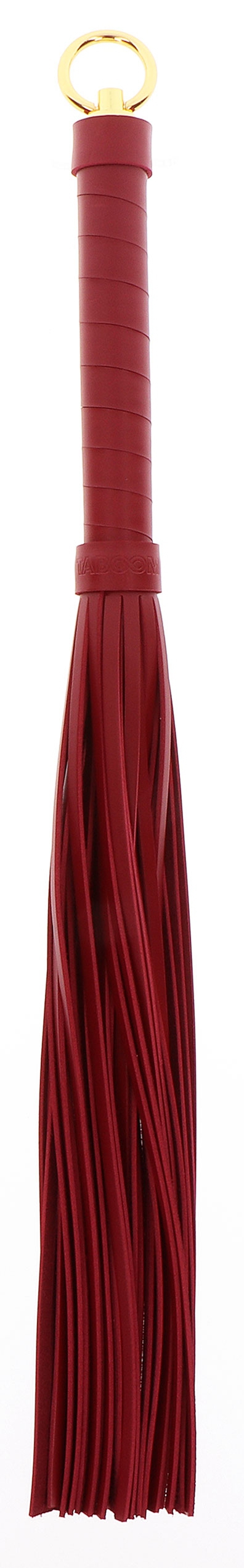 Ce martinet rouge de la marque Taboom mesure 45cm de longueur totale.Il est idéal pour des moments intenses de soumission.Avec des lanières de 30cm de longueur.Il est fabriqué en matière Polyuréthane avec un anneau en métal doré