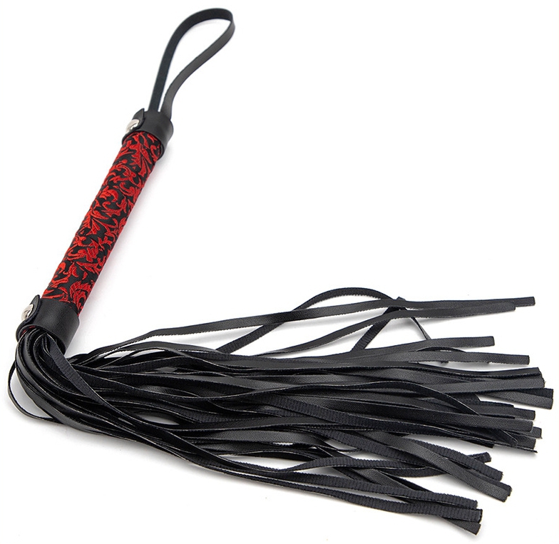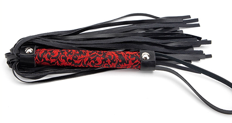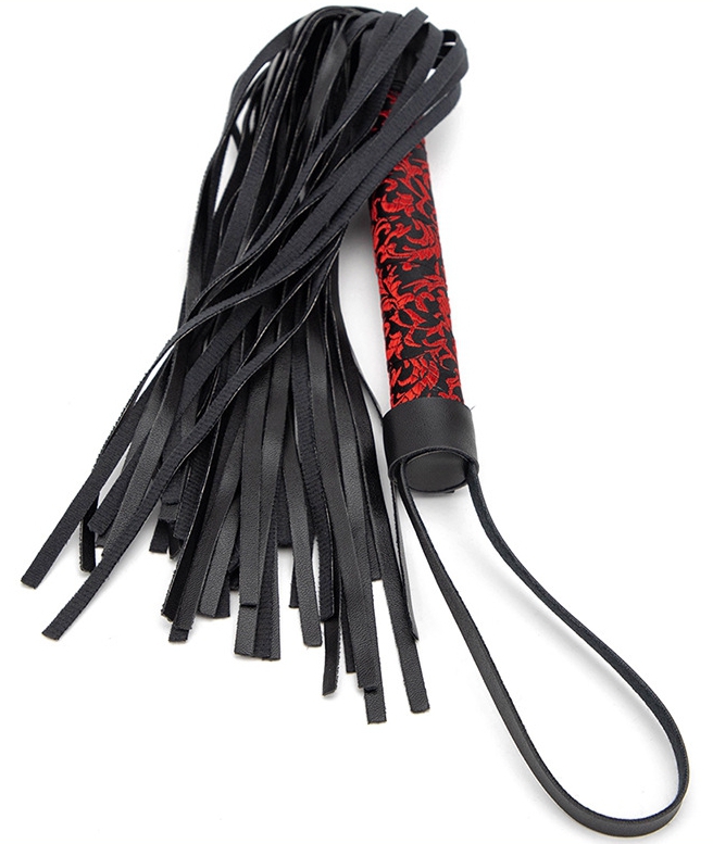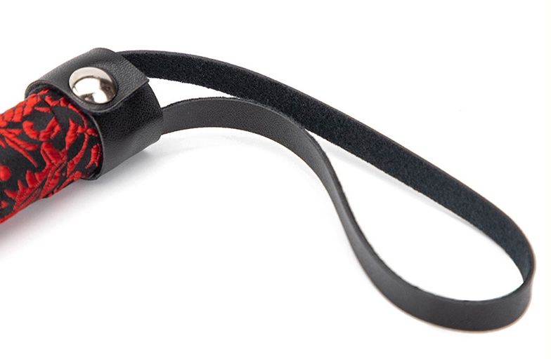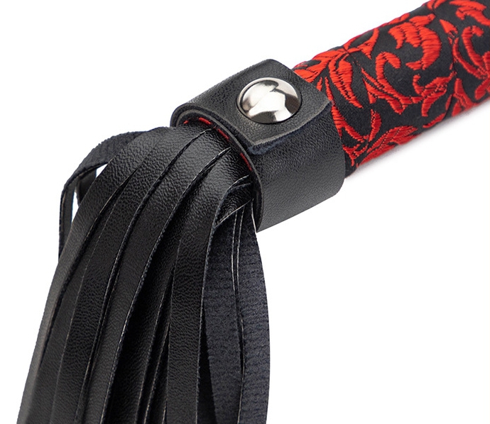Ce martinet Tang est composé de lanières fines de 25cm caressant la peau ou claquant contre les fesses. Le manche est recouvert d’un tissu satiné avec le contraste en rouge. Longueur totale de 40cm. Lanières en simili