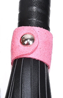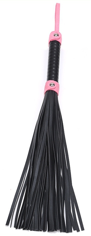 Ce martinet noir et rose est idéal pour les moments de soumission.Il a des lanières souples de 30cm qui viennent claquer la peau et les fesses. Longueur totale de 45cm. Fabriqué en simili (polyuréthane). Le rose est en feutrine