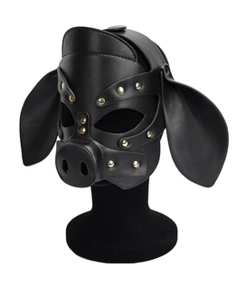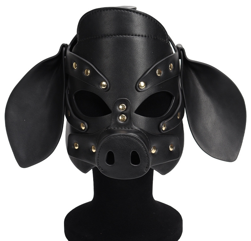 Le masque Pig Grox est réalisé avec une forme de tête de cochon avec les oreilles tombantes et le groin.Il a des éléments en métal doré. La hauteur est de 19cm.Avec une sangle ajustable et un tour de tête de 60 à 70cm environ. En simili (polyuréthane)