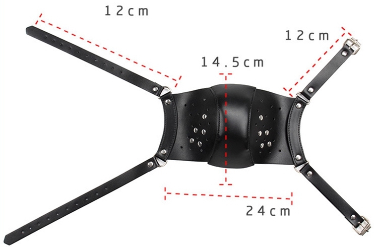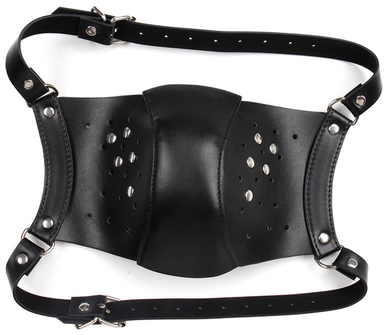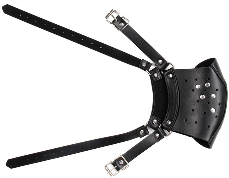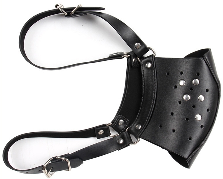 Ce masque Punk noir est un accessoire conçu pour des jeux SM. Il couvre le visage en cache le nez et la bouche.Il a une bande large de 15cm avec des trous et des rivets métalliques.Avec des sangles ajustables à l’arrière. En simili