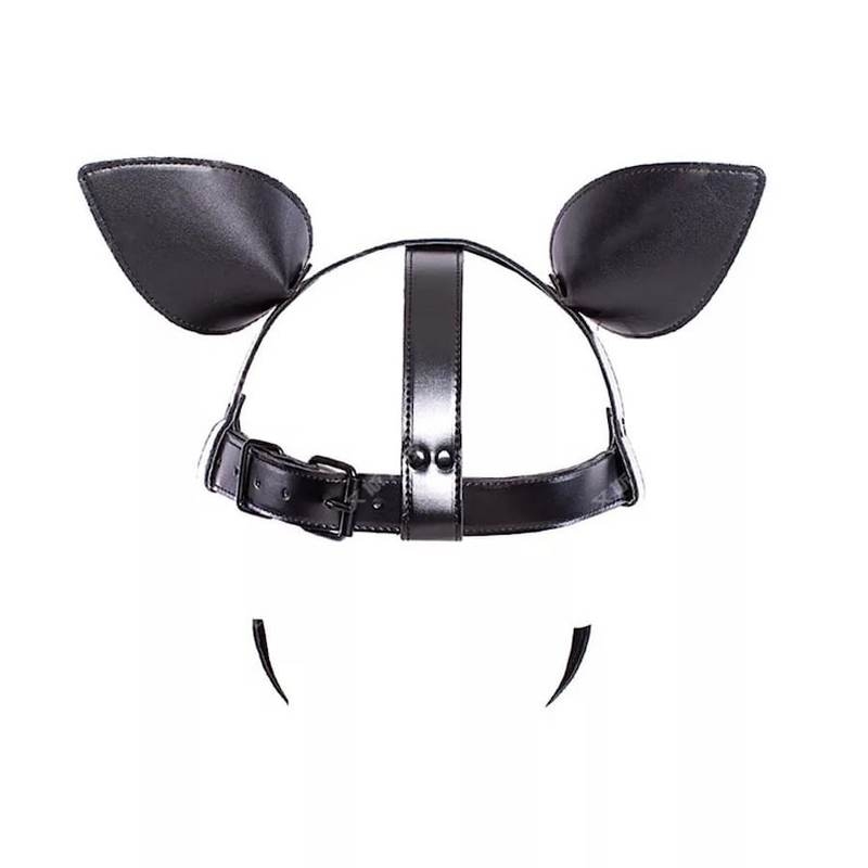 Masque avec une forme de tête de chien.Réalisé en matière simili imitant le cuir. Avec sangle ajustable à l’arrière. Hauteur de 23 cm.