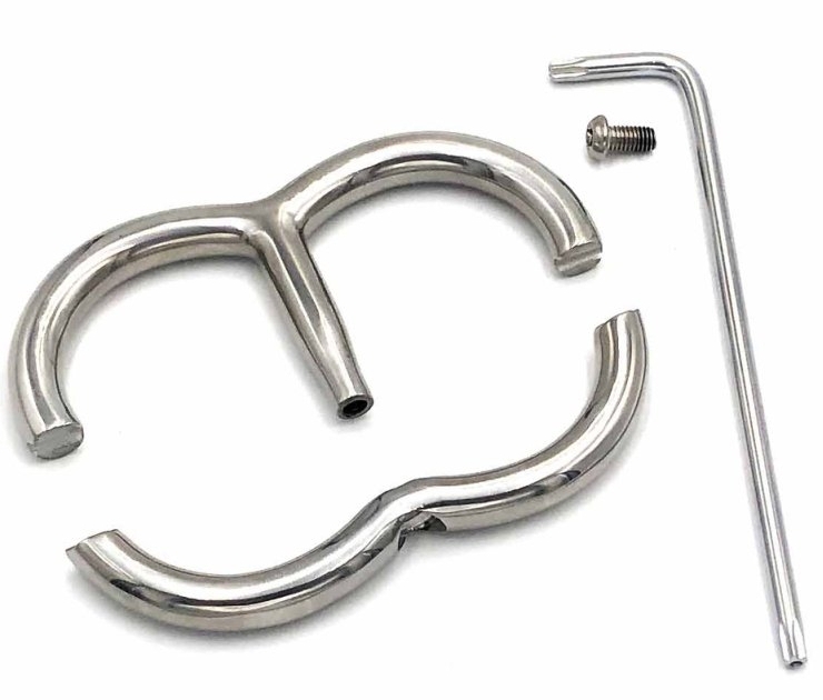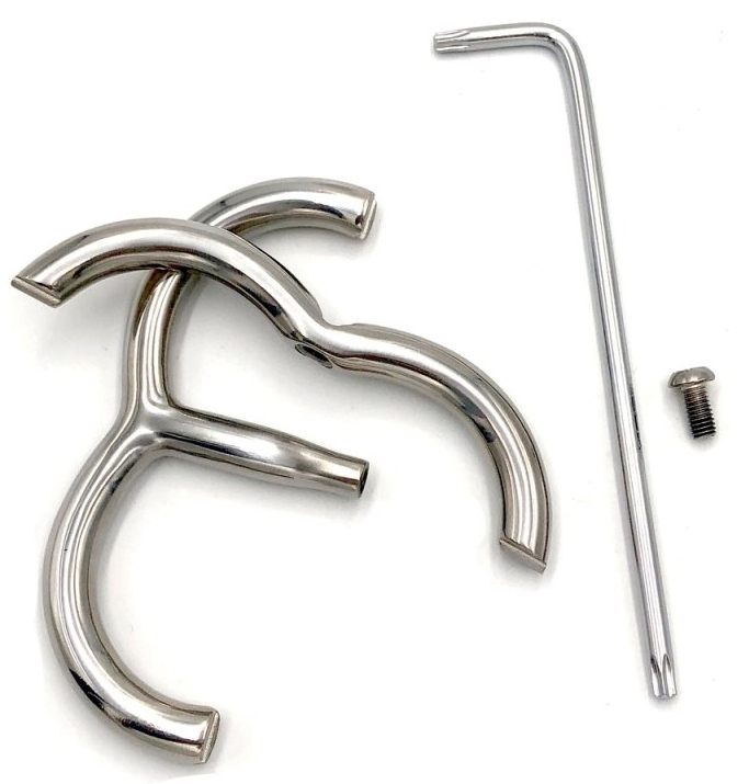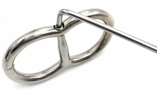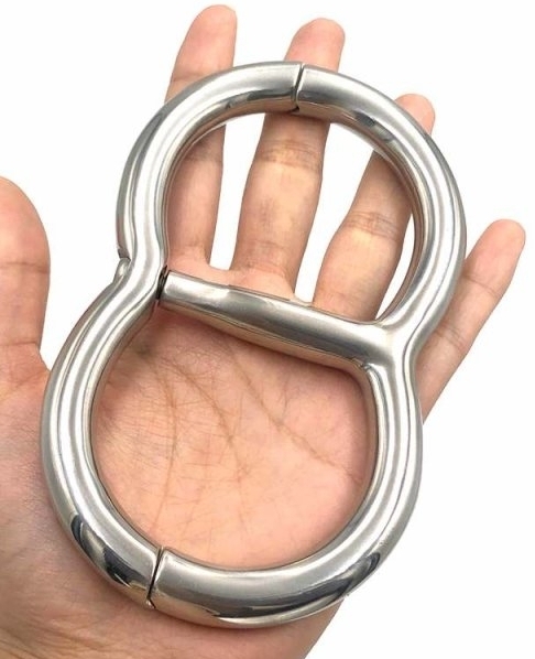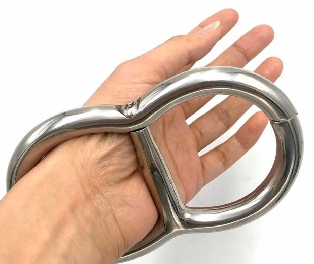 Menottes de poignets en acier inoxydable Diamètre pour les poignets de 50 mm. Épaisseur de 12 mm. Ouverture grâce à une clé en étoile Poids de 300 grammes