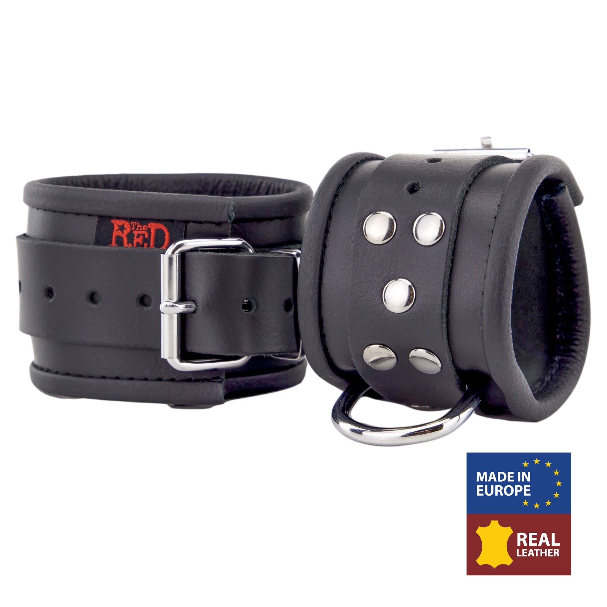 Ces menottes en cuir sont conçues par la marque The Red. Elles sont idéales pour attacher le ou la partenaire et s’amuser.Elles sont réalisées en cuir véritable (de vache) avec un intérieur sans peau. L’épaisseur est fine. La longueur est de 25cm ajustable et la largeur est de 6.5cm