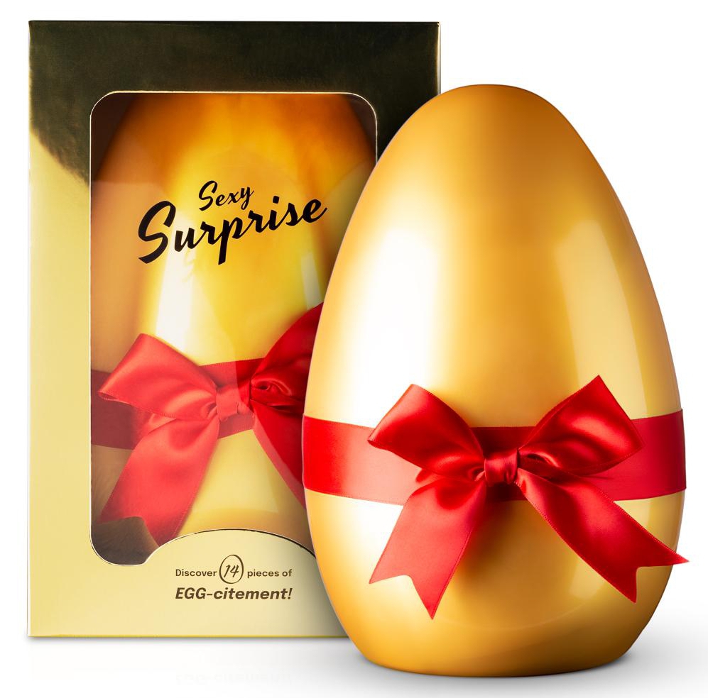 Cet Oeuf surprise contient 14 accessoires idéals pour donner du fun pendant le moment coquin.Découvrez les surprises au fur et à mesure et amusez-vous. L’oeuf contient notamment : des menottes, une corde, des accessoires vibrants et un string dentelle rouge. Allez de surprise en surprise et jouissez !