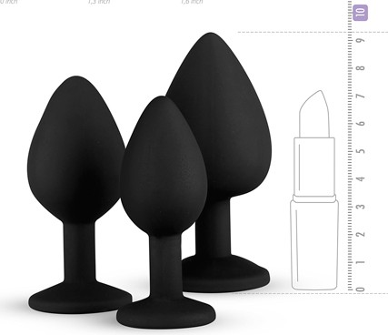 Ce pack est constitué de 3 plugs Bijou qui permettent de mettre en valeur les parties intimes.Ils se portent la journée ou pendant les moments coquins pour donner plus d’originalité. Dimensions:Taille S avec 6.2cm de long et 2.7cm de largeTaille M avec 7cm de long insérable et 3.3cm de largeTaille L avc une longueur de 8.1cm et une largeur de 4cm. Réalisé en Silicone