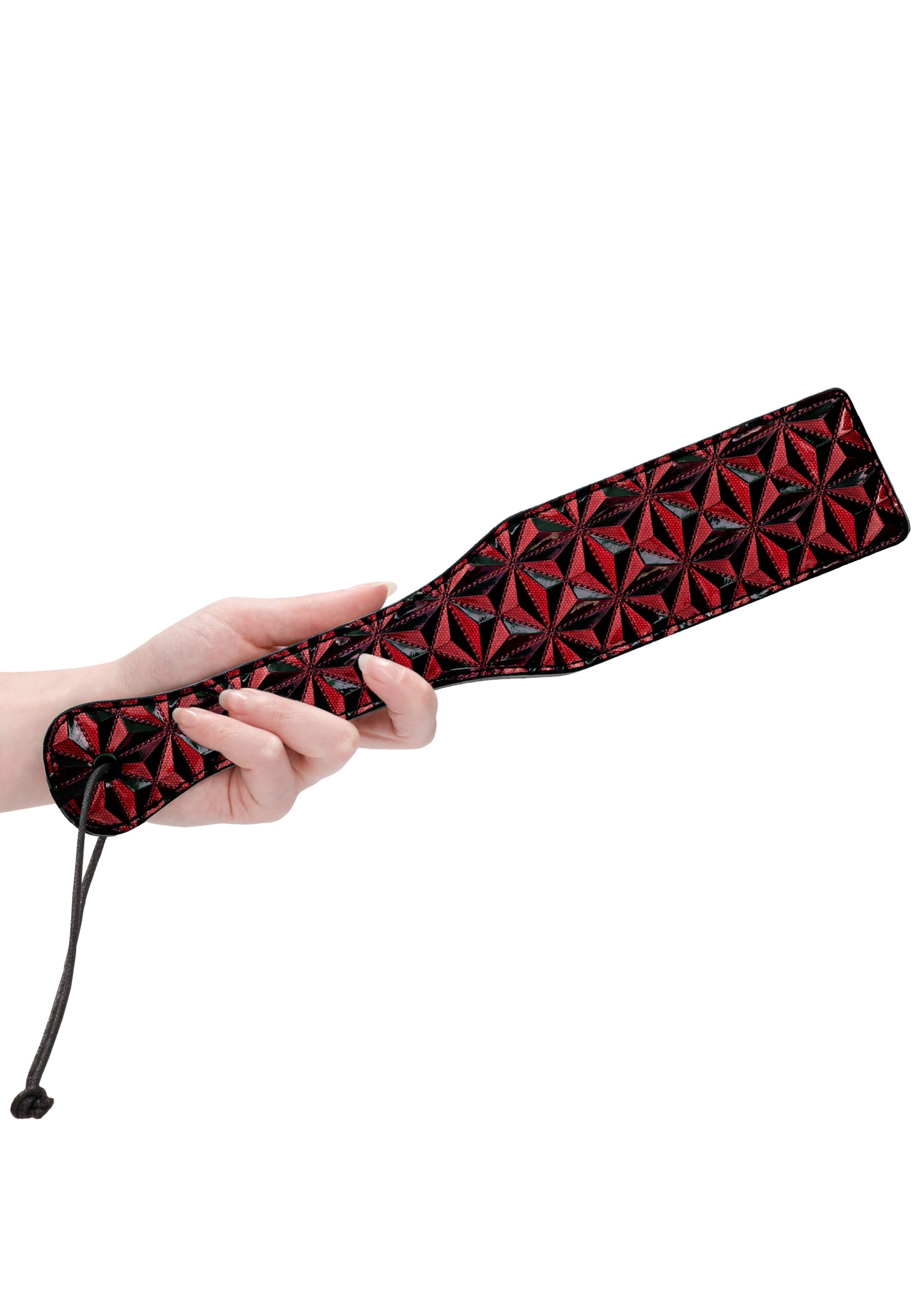 Cet accessoire de la marque Ouch! est un paddle de 6cm de large avec un relief croisé qui vient marquer la peau.Il est idéal pour les moments de sexe coquins et SM. Il possède une longueur totale de 31.5cm (15cm sur la partie qui tape).Il est réalisé en matière Vinyle et Simili cuir