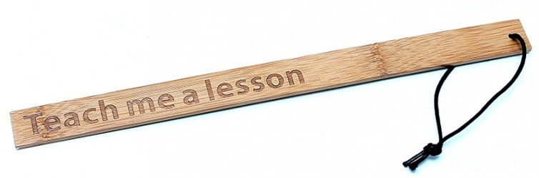 Ce paddle en bambou de la marque Rimba est un accessoire idéal pour les moments SM. Il permet de donner une correction lors des moments SM. Longueur de 40cm. Largeur de 3cm. Avec l’inscription « Teach me a lesson »