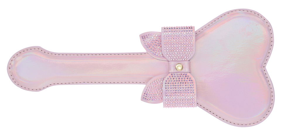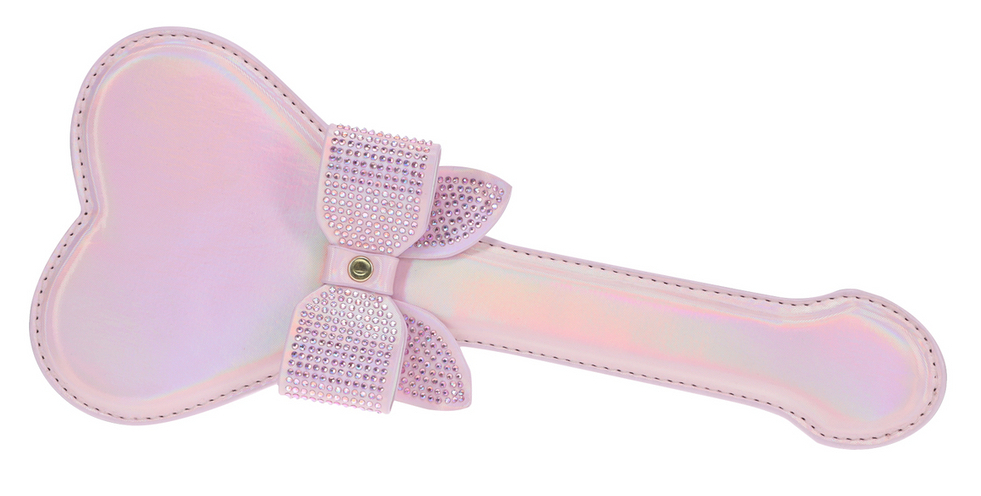 Paddle en forme de coeur large de 12.5 cm, avec noeud en relief. Longueur totale de 28 cm. En simili, avec dragonne.