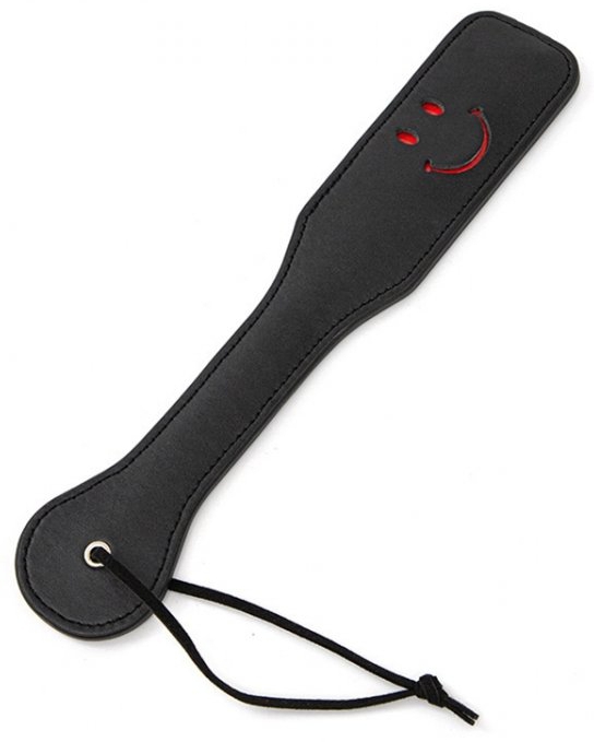 Ce paddle Smile Spank est un accessoire de 32cm de longueur totale avec un smiley souriant.Il amène du fun dans le le moment SM. La partie haute mesure 14cm de longueur avec une largeur de 6cm.Il est fabriqué en simili