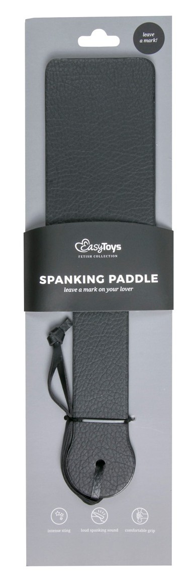 Ce paddle est spécialement conçu pour les envies de fessées. Il est proposé par la marque EasyToys.Il permet d’augmenter les sensations lors des moments de domination et de soumission. Cet accessoire est composé d’une longueur totale de 32cm.La partie haute mesure 18cm de long et 8cm de large. Il est fabriqué en matière polyuréthane (simili cuir)