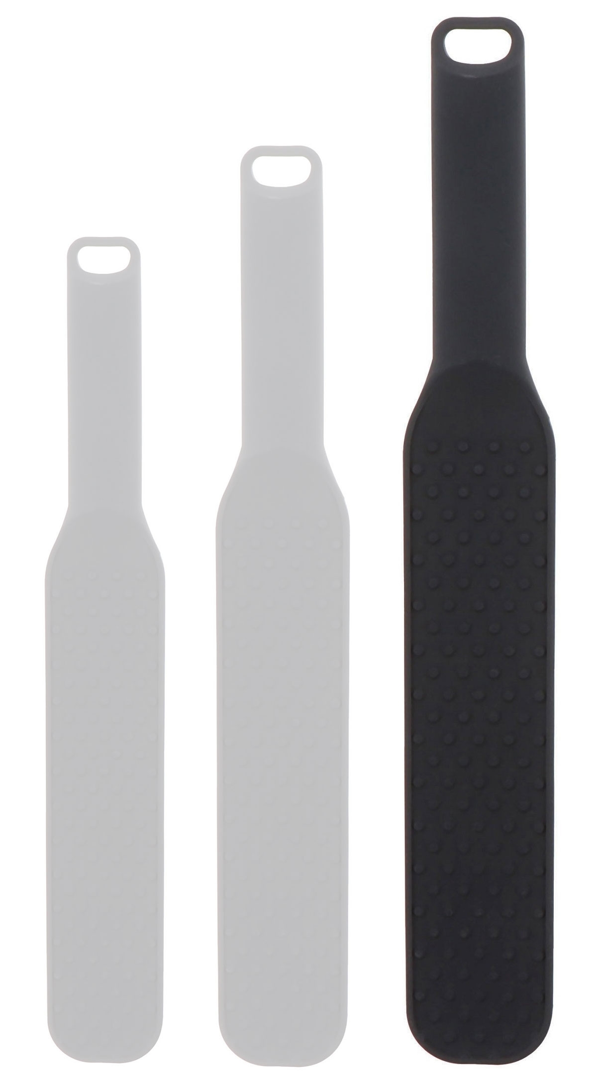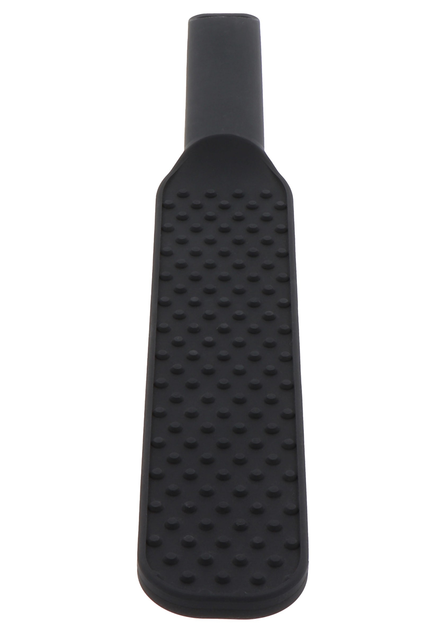 Paddle en silicone souple avec picots ronds et manche ferme. Manche de 11 cm. Partie en silicone souple de 24 cm. Taille XL. Poids léger En silicone