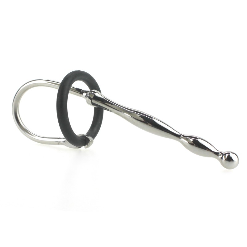 Ce penis plug est une sonde à urètre réalisé en métal composé de 2 parties:- la tige de 8cm de long pour un diamètre de 8mm – les anneaux silicone 25mm et 30mm de diamètre à fixer sur la sonde et à positionner autour du gland. Beau plug pour pénis avec une forme originale et excitante