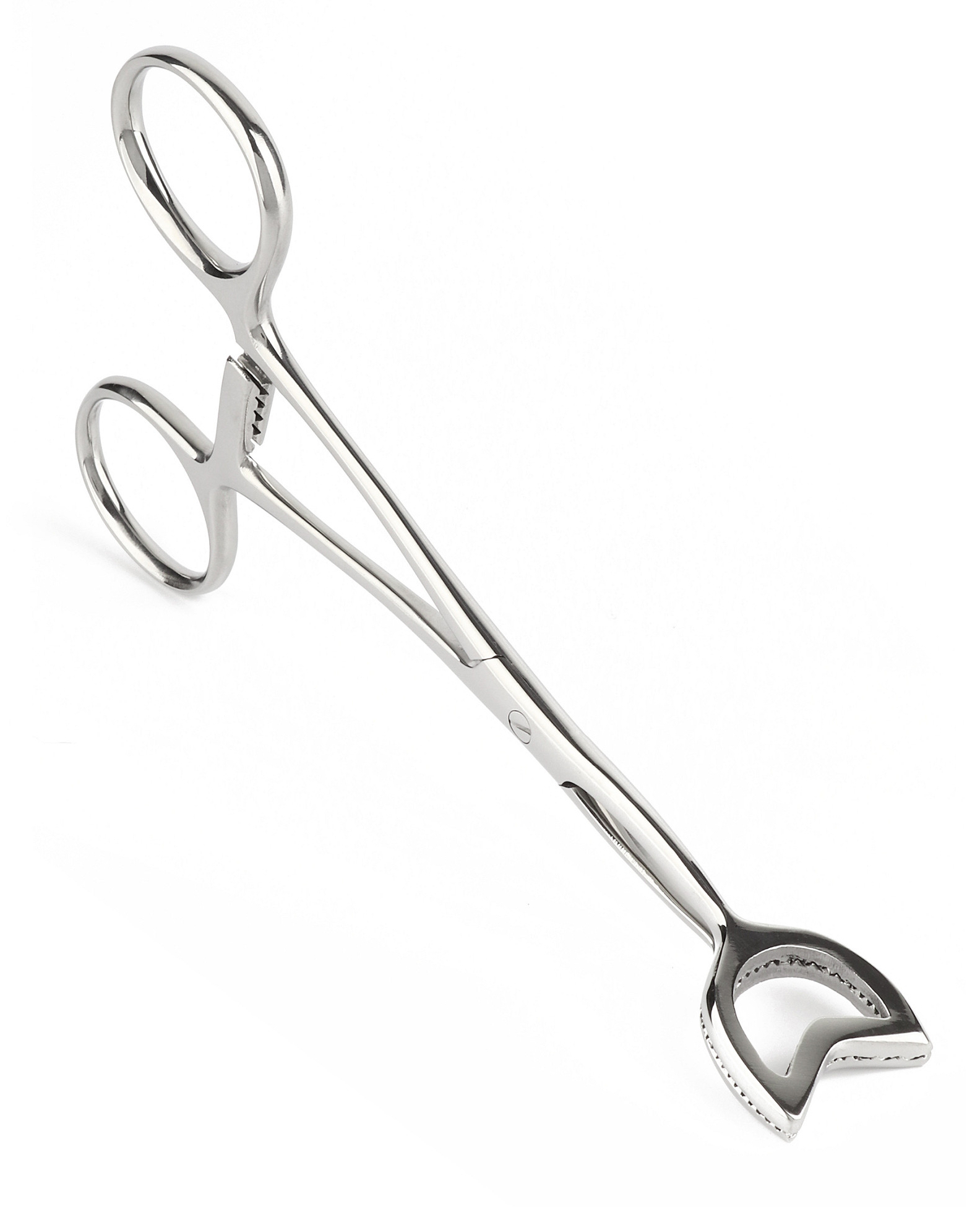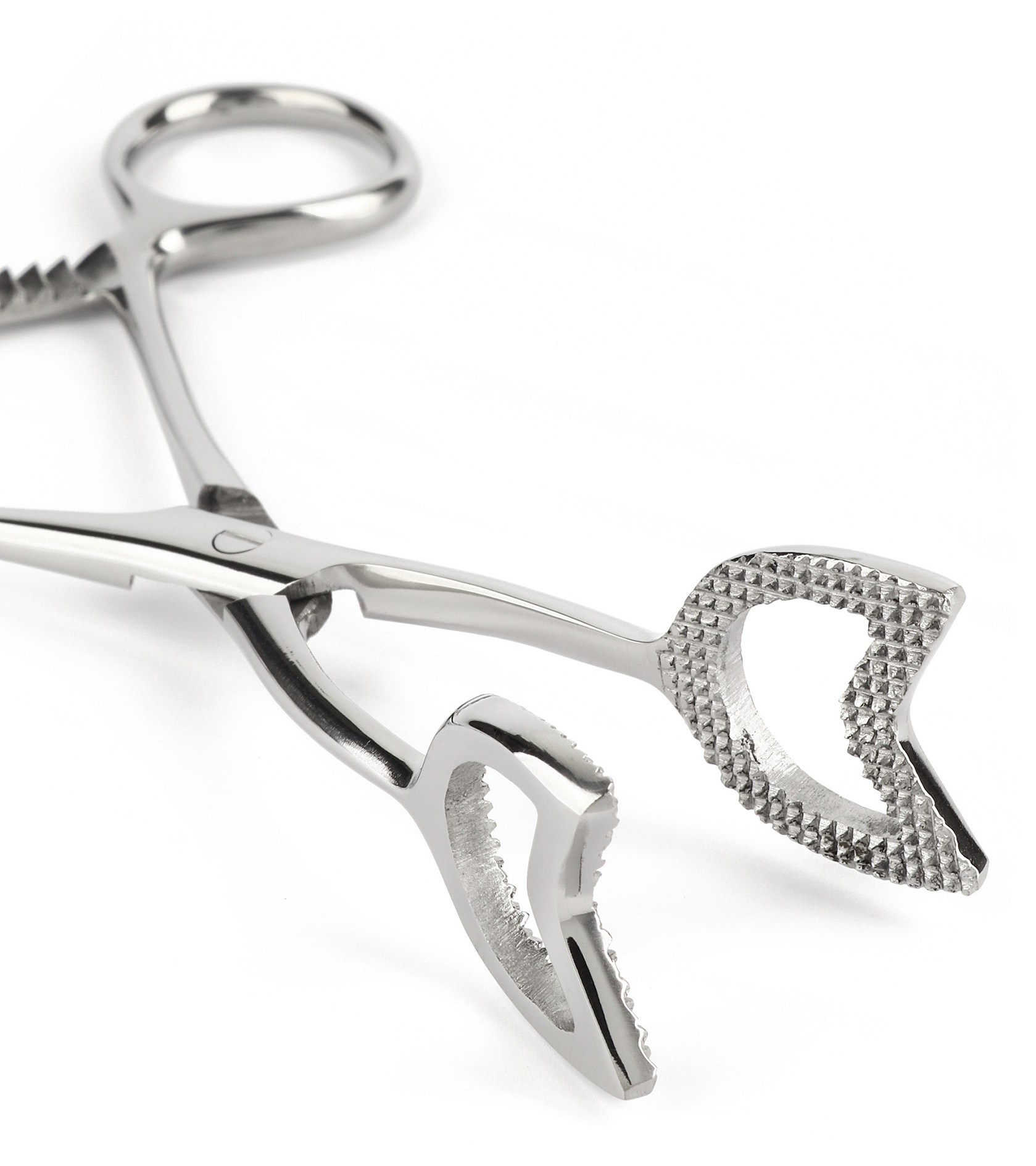 Pince avec une forme en V à l’extrémité pour appliquer une pression stimulante sur les zones choisies.Sa surface permet de maintenir le pincement sans que ça glisse.Un système de blocage est présent à la base. Dimensions complètes : 15 x 8 cm. En acier inox.