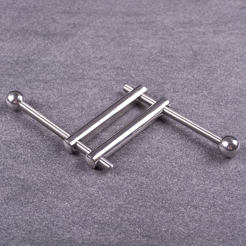 Cet accessoire SM est une pince pour le pénis et les bourses.Il est réalisé en métal avec des barres de 9cm de long et un système de vissage. Cela permet d’écraser le sexe mais aussi les bourses.Idéal pour les amateurs de travail des couilles