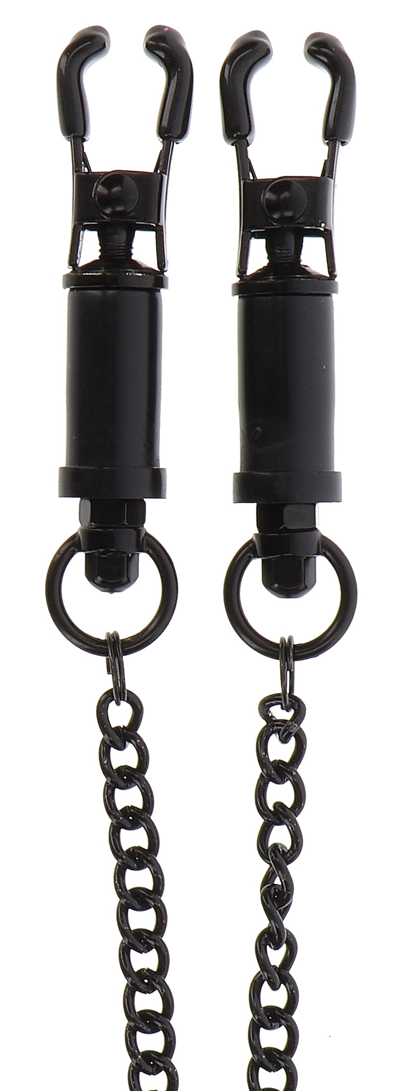 Ces pince-tétons en métal sont proposées par la marque Taboom et permettent de moduler le plaisir grâce à leur fonction ajustable.Elles sont reliées par une chaîne en métal de 28cm. Chaque pince mesure 8cm.