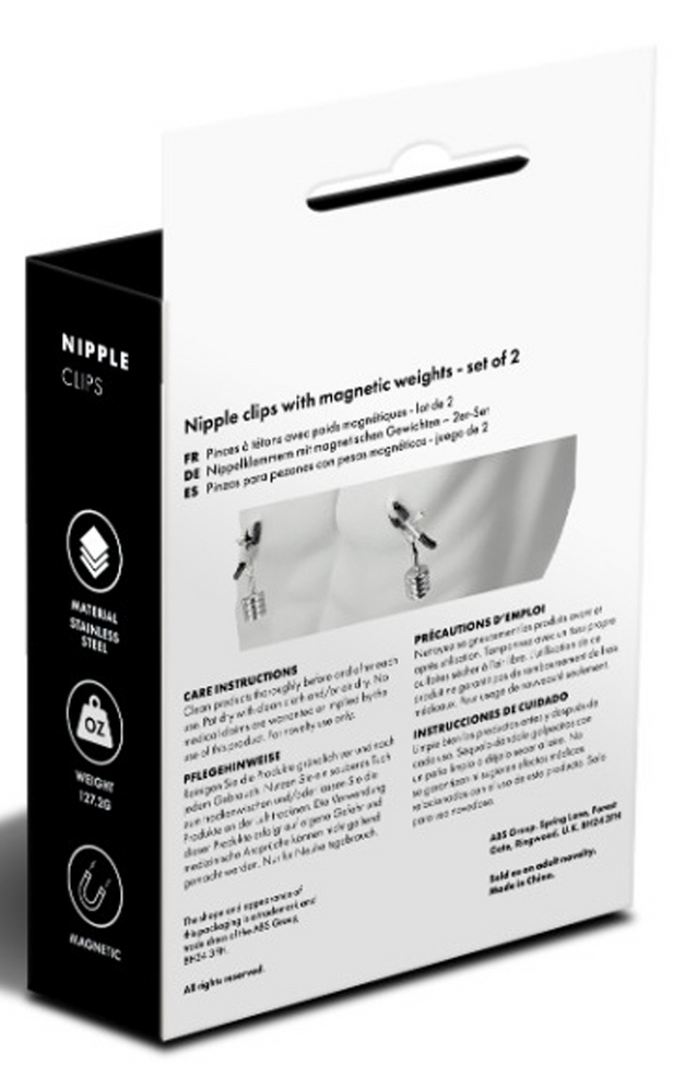 Pinces pour les tétons avec des poids modulables.Maximum 60 grammes par pinces. Serrage ajustable. Longueur de 8 cm. En métal
