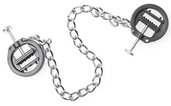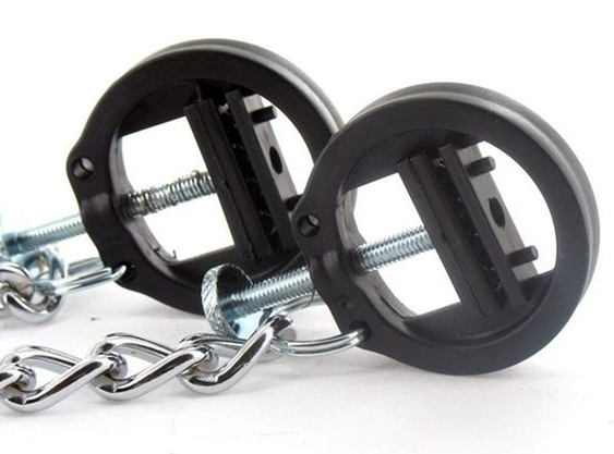 Ces pinces pour les tétons sont rondes (4cm de diamètre) et permettent de serrer les tétons et de prendre du plaisir.Chaque pince possède un serrage ajustable allant jusqu’à 1cm. La chaîne en métal mesure 30cm de longueur. Réalisées en plastique ABS et métal