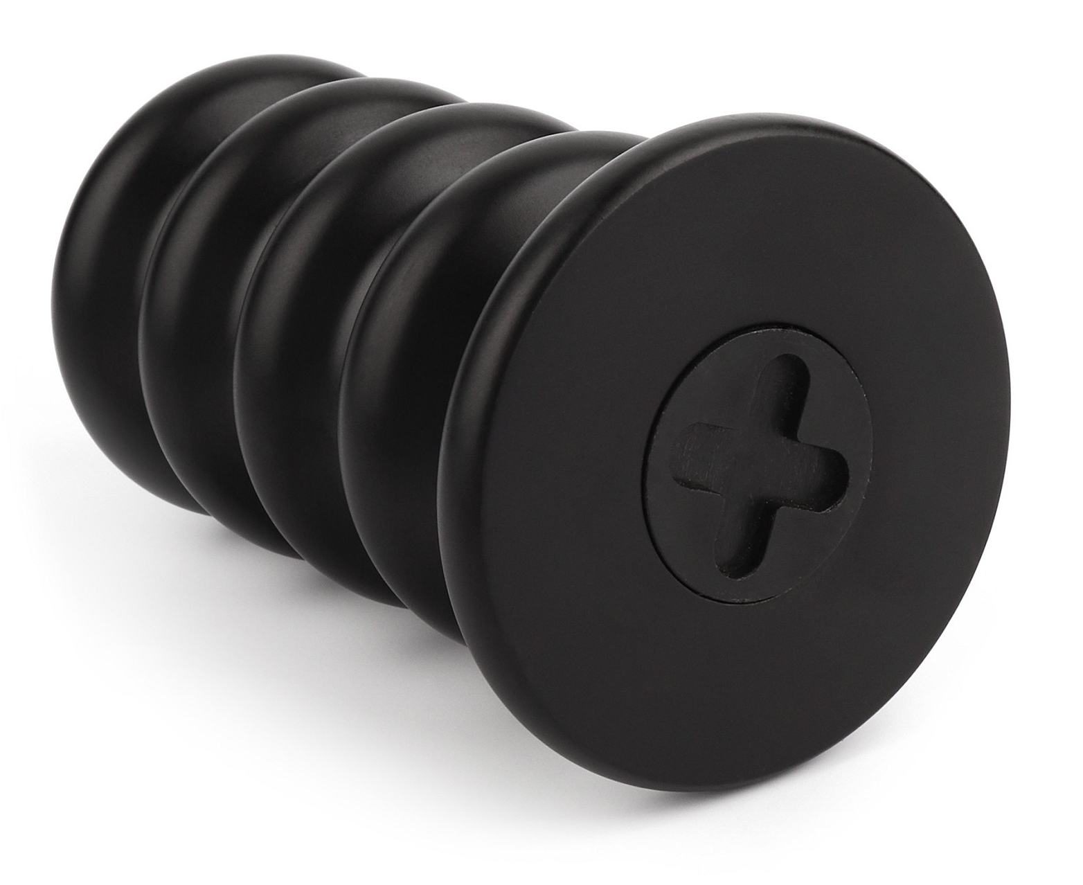 Plug noir avec une forme originale comportant des ondulations excitantes.Sa longueur insérable est de 10 cm. La largeur maximale est de 5 cm. Les creux font 4 cm de large. Il est fabriqué en acier inox.