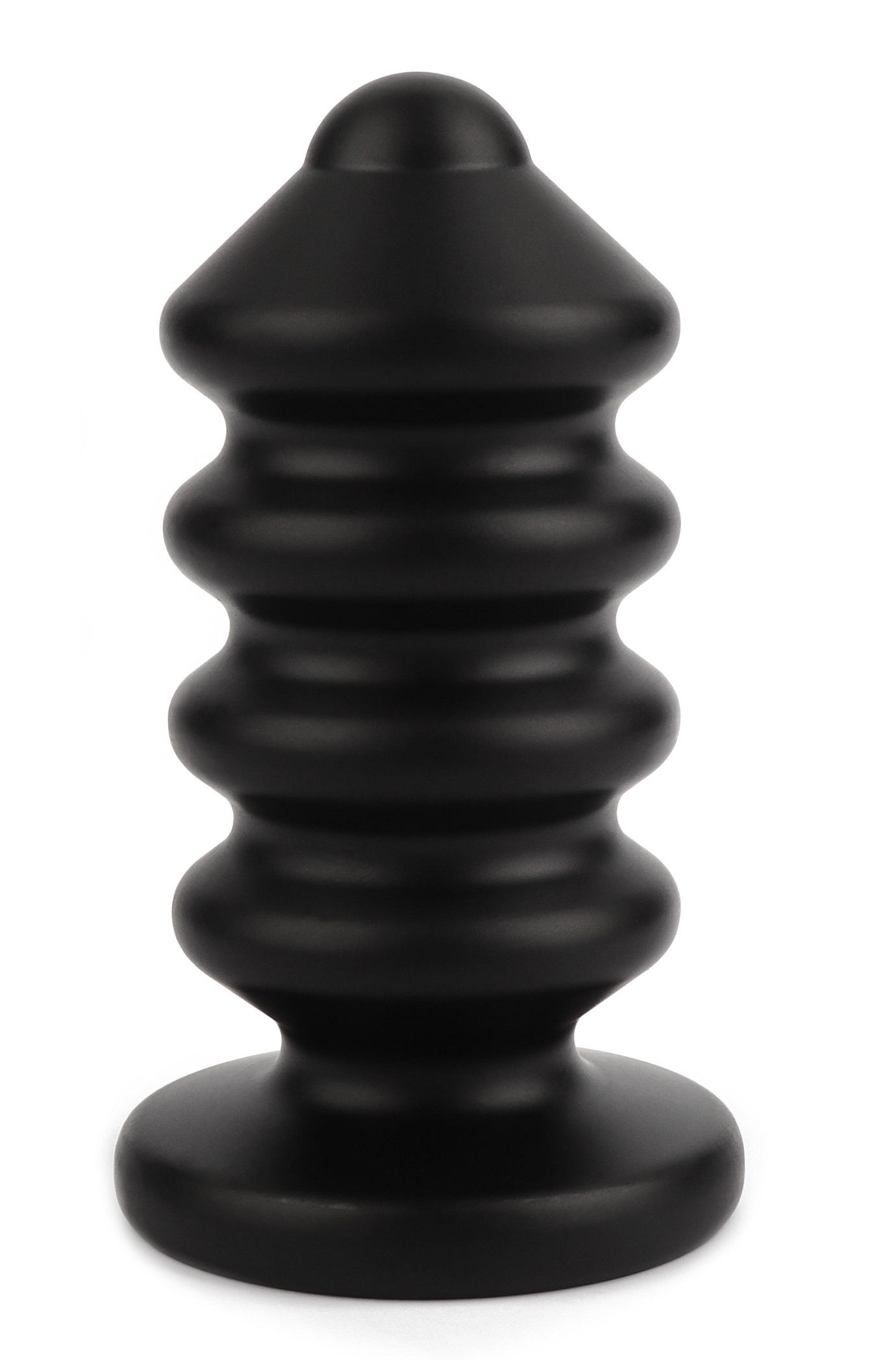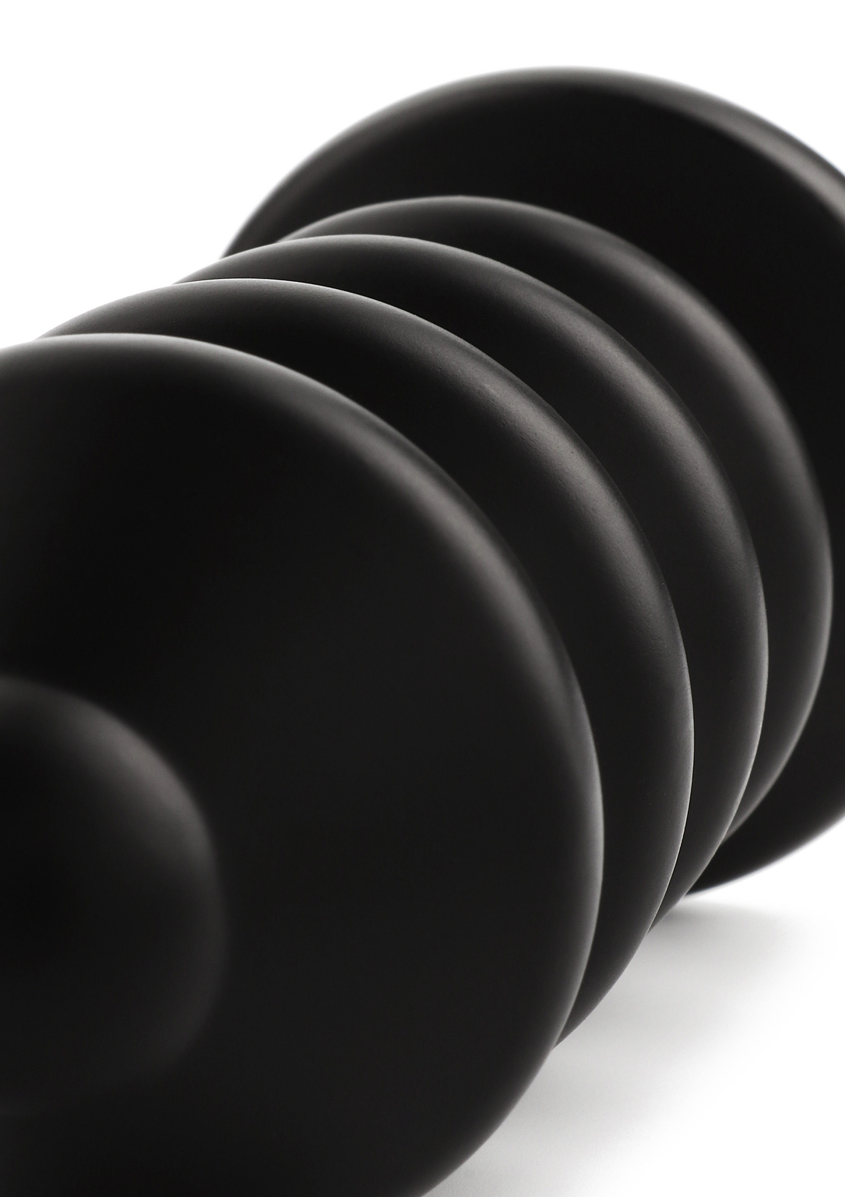 Plug avec une forme originale comportant de larges nervures pour une insertion excitante.La longueur insérable est de 8 cm.La largeur maximale est de 4 cm. Les creux sont de 3 cm. En acier inox avec finition noire
