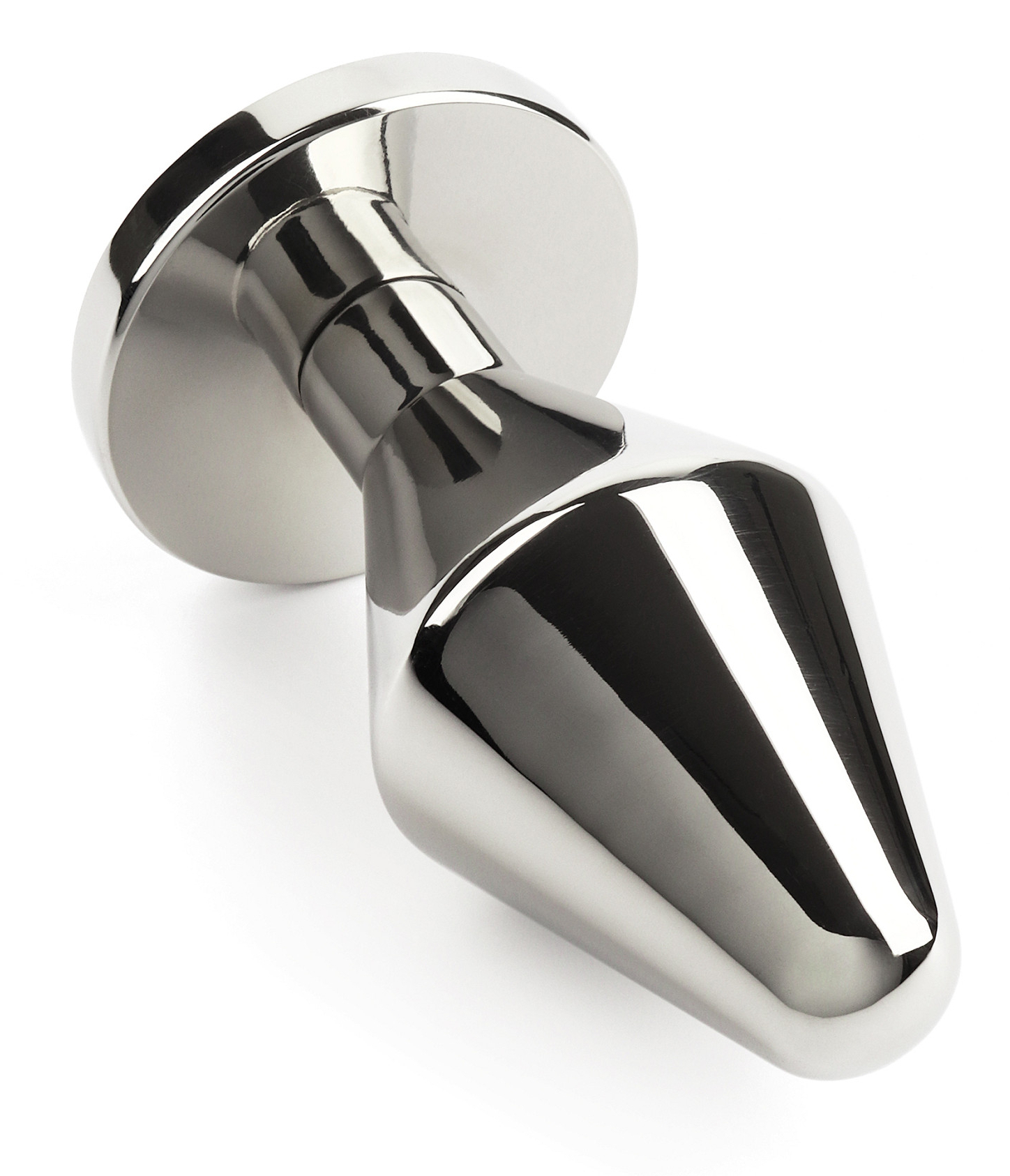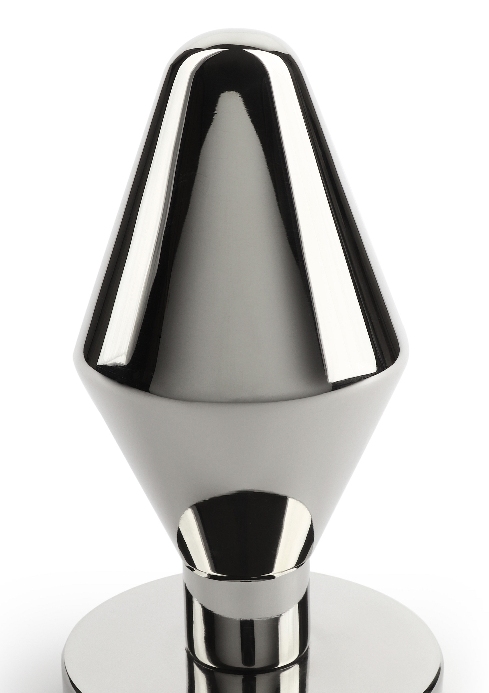 Plug avec une longueur insérable de 8.5 cm et une largeur maximale de 3.8 cm.Avec une forme idéale pour des plaisirs intenses et agréables.La partie rétractée fait 1 cm de largeur.Le poids est de 390 grammes. Avec une base plate. En acier inox.