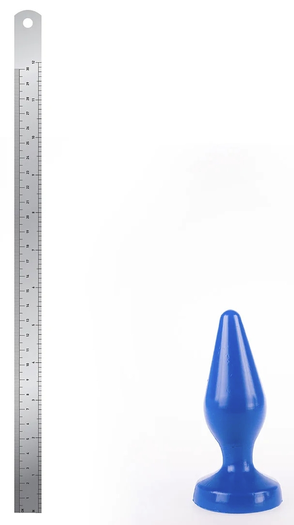 Plug bleu de 11 cm de longueur insérable et de 4.3 cm de largeur.Avec une surface lisse et une base ventouse. En caoutchouc souple PVC