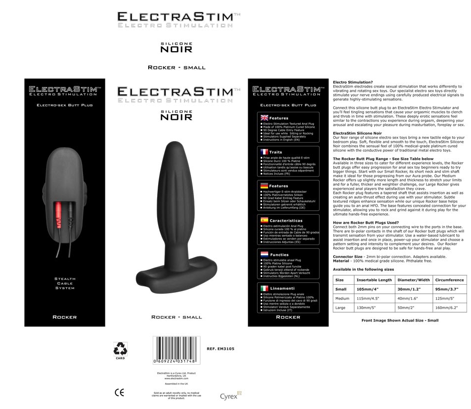Ce plug d’électrostimulation est un sextoy de la marque ElectraStim.Il s’utilise impérativement avec une centrale de la même marque.Il se compose d’une longueur insérable de 10cm et d’une largeur de 2.5cm. En silicone. Avec son sachet de rangement