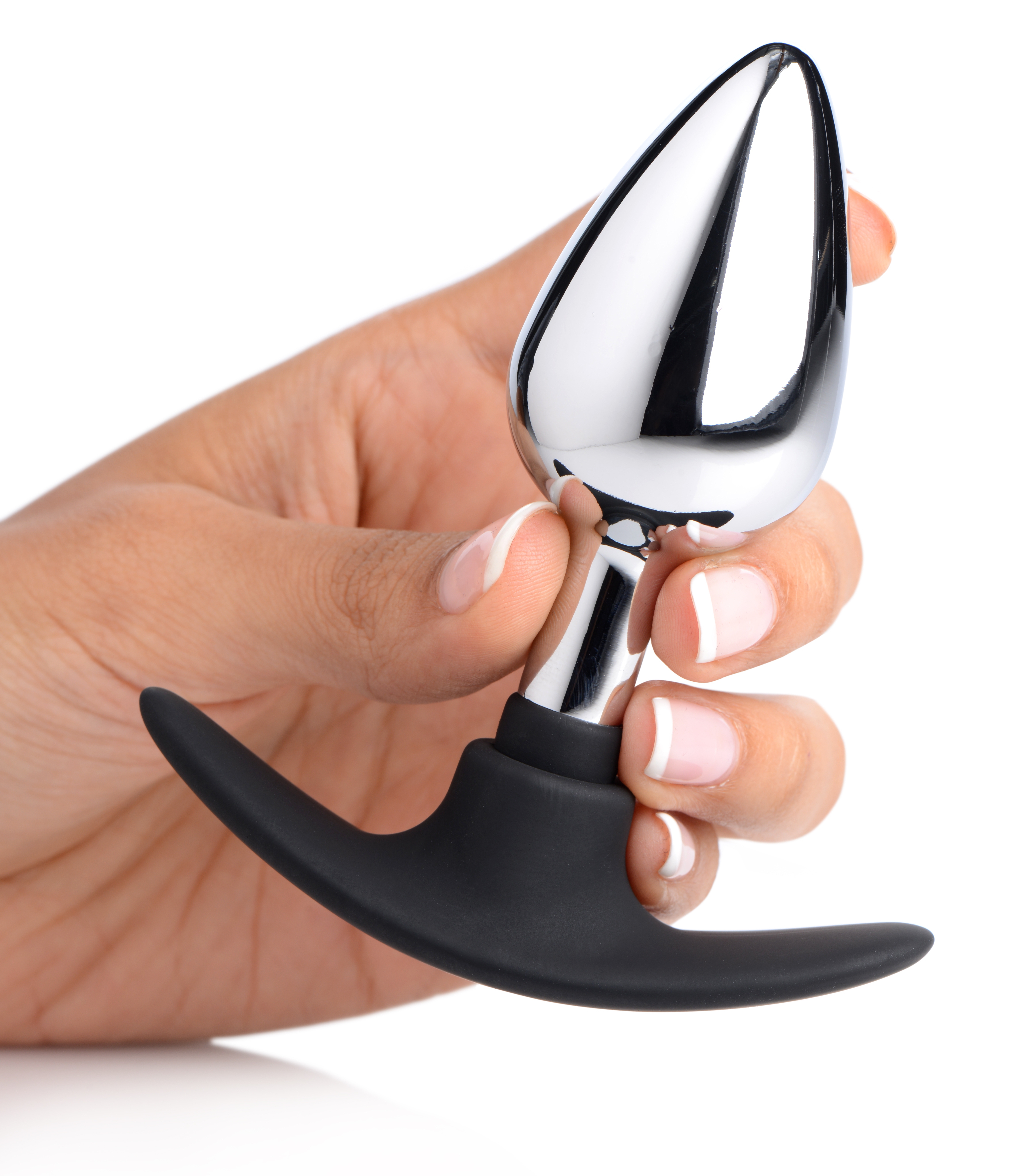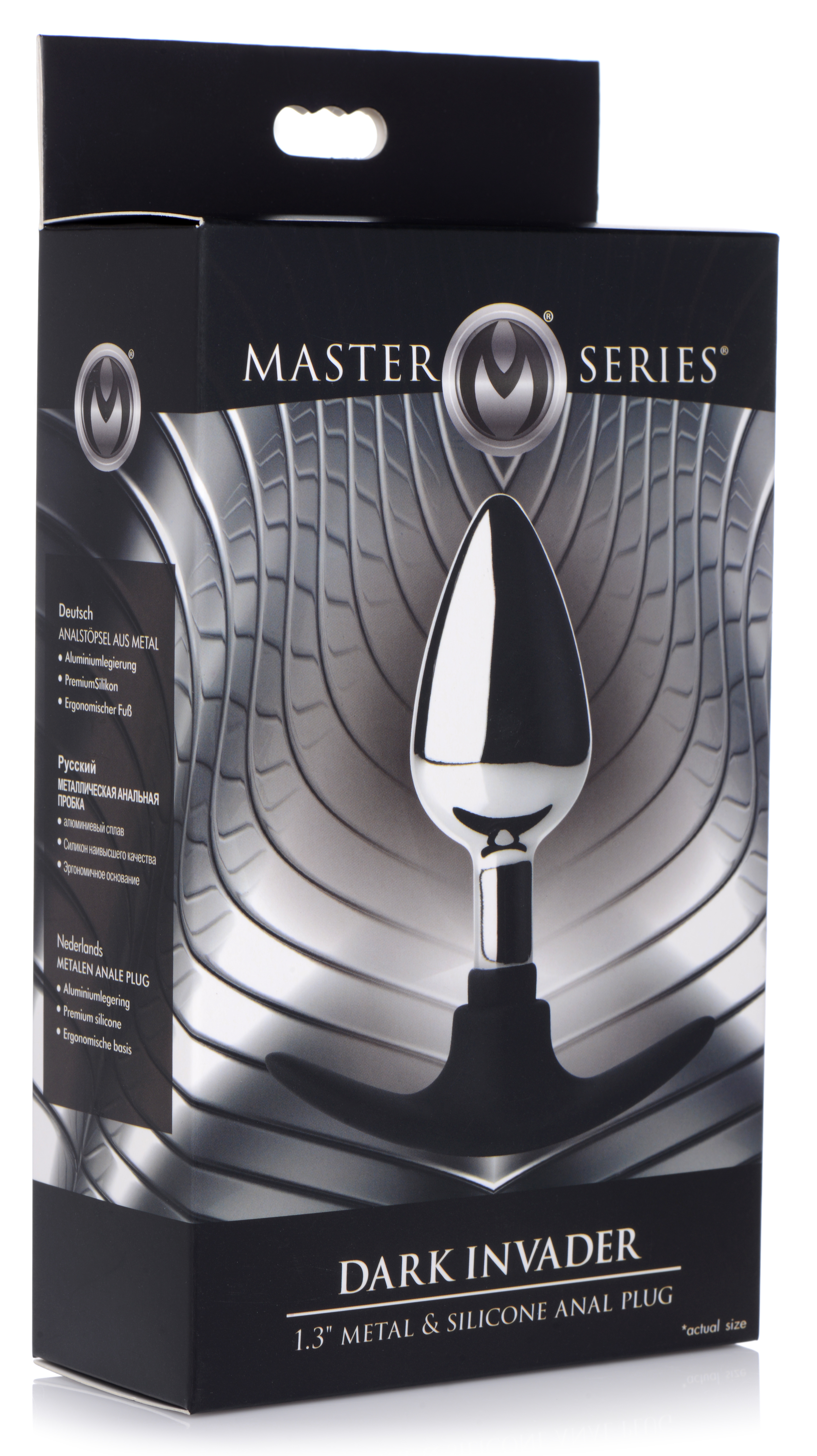 Ce plug en métal Dark Invader de la marque Master Series est un sextoy idéal pour les jeux coquins et les préliminaires.Il se compose d’une forme arrondie et une surface lisse qui rend l’insertion plaisante.La longueur insérable est de 8cm. La largeur est de 3.4cm.La base est incurvée pour un usage plus pratique et confortable. Elle est en silicone. Plug fabriqué en aluminium