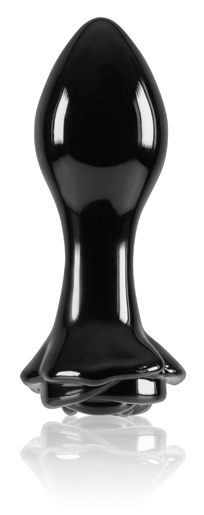 Ce plug en verre noir est conçu avec une longueur insérable de 7cm et une largeur maximale de 3.2cm.L’extrémité est en forme de rose.Avec une surface lisse